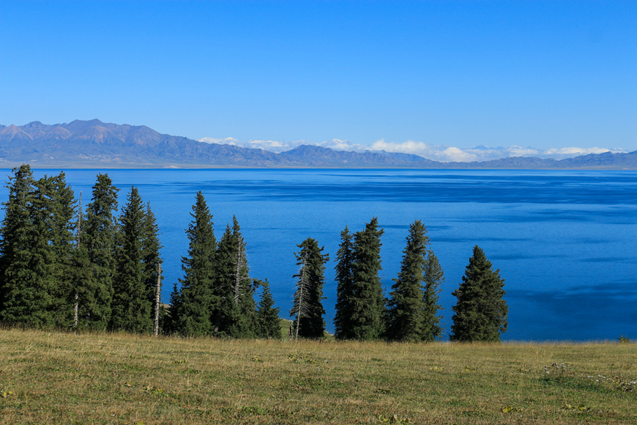 在高处看着琼库什台村的房屋散落在草原上,笔直的云杉,奔腾的马儿,湛蓝的天空,孤立的树或是整齐的栏栅,是这个世外桃源给我最深的画面。