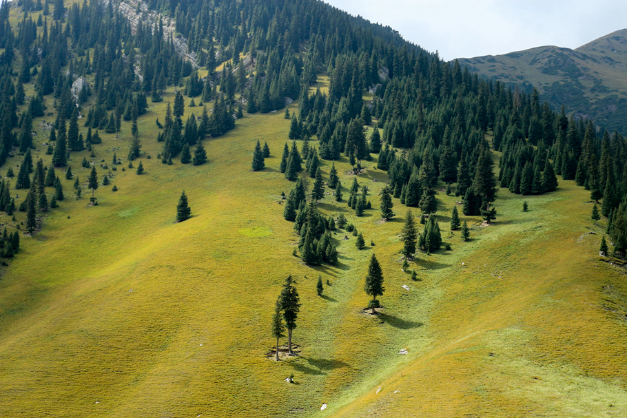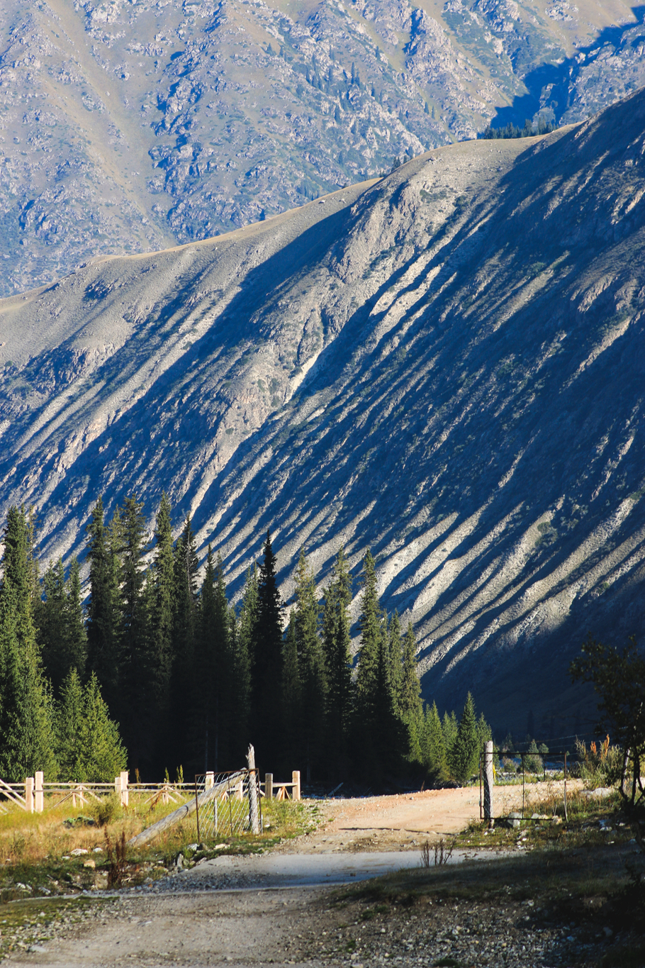现在想起夏特牧场,想念的是夜里裸泡在野温泉池子里,抬头望着拥有银河的星空,拿着大乌苏坐在木栈道上感受高原的寒凉;清晨我们往汗腾格里山走去,沿途几乎没有人的夏特牧场,两边高大的云杉遮挡着迎面而来的朝阳,这是对整片丛林最深刻的印象。