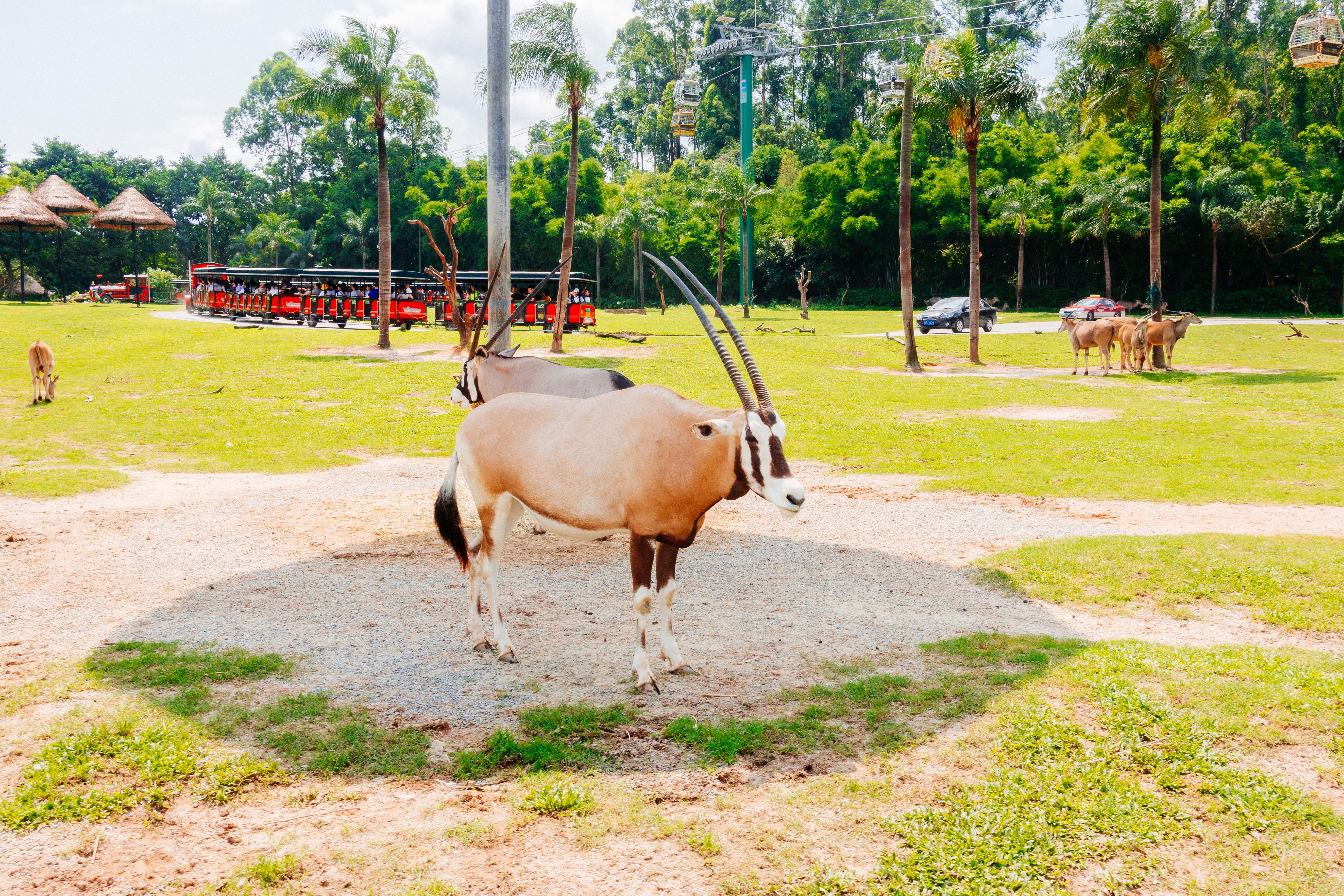 缆车下来后我们决定乘坐小火车,近距离的去感受野生动物!长隆野生动物世界的小火车是近距离感受野生动物的绝佳方式。在候车点依次排队上车,火车上的座位都是一一对应的,每排坐四个人,坐在边上可以更好地观赏沿途的动物。