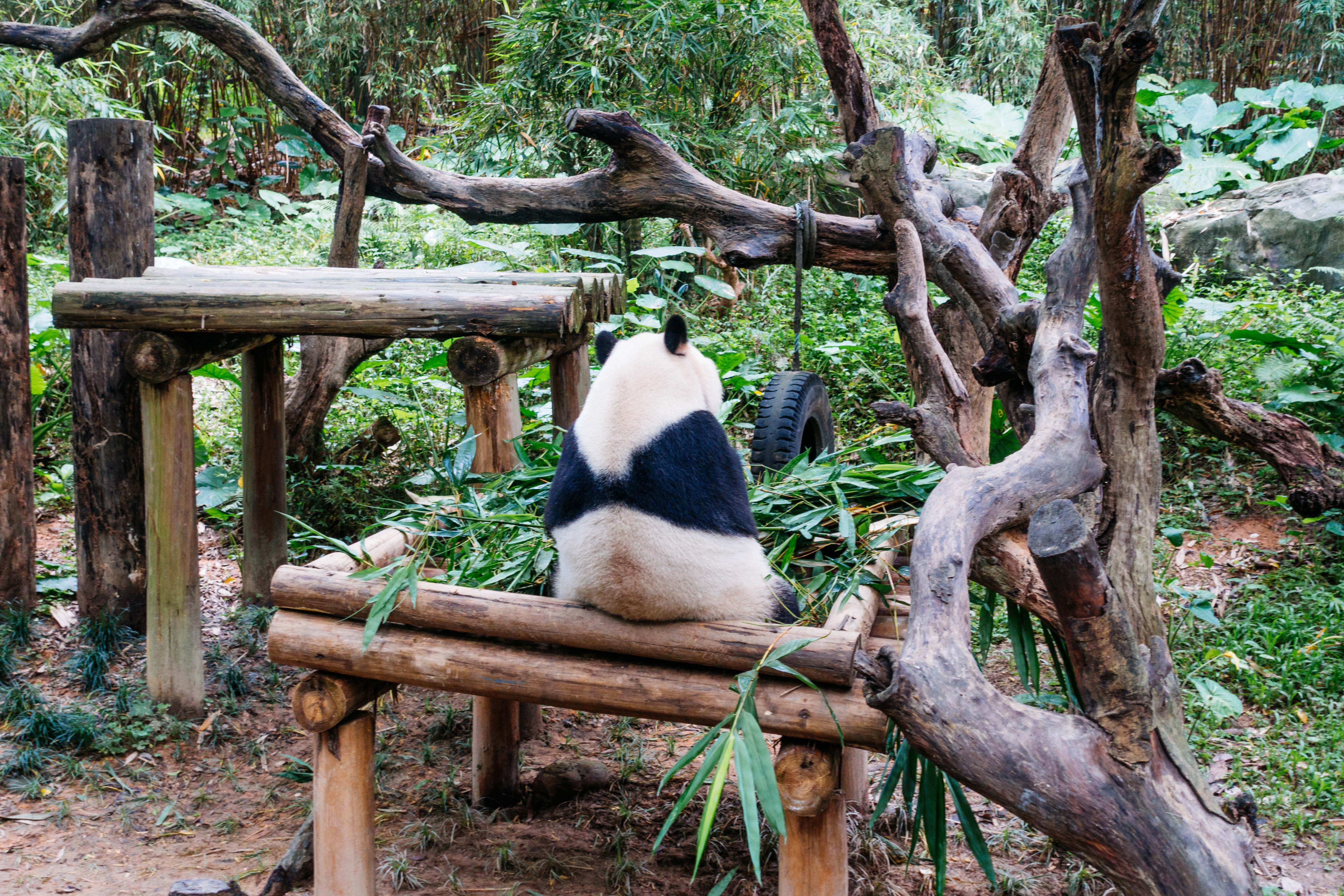 夏天来了,熊猫也怕热,为此,园区特意准备了冰块。 最喜欢熊猫背对着你吃饭发呆的样子,你会觉得它也在思考人生。