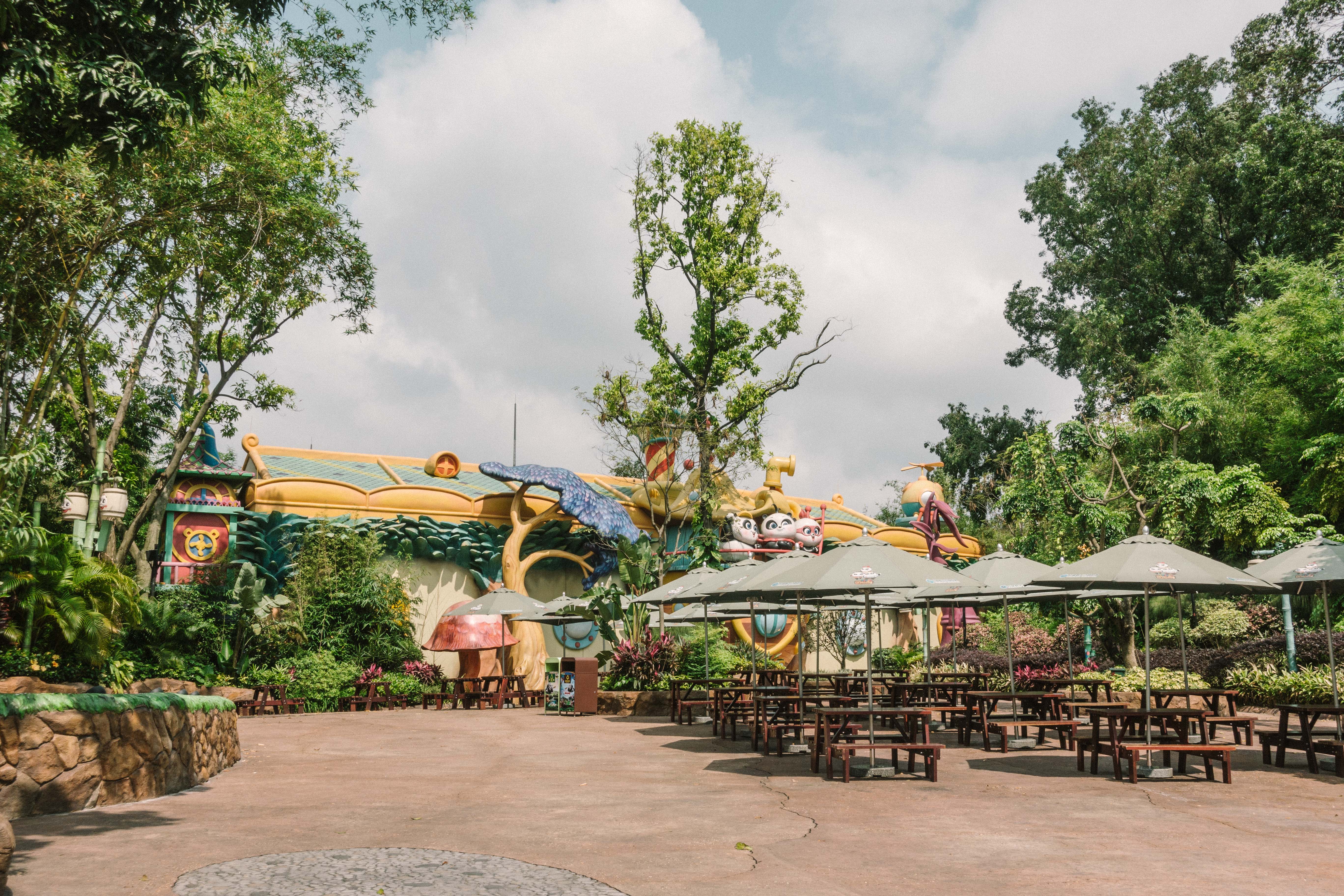 在熊猫乐园里你还可以穿越巨竹林到熊猫村看望熊猫大家族,闯入熊猫城堡里大熊猫三胞胎的家哦