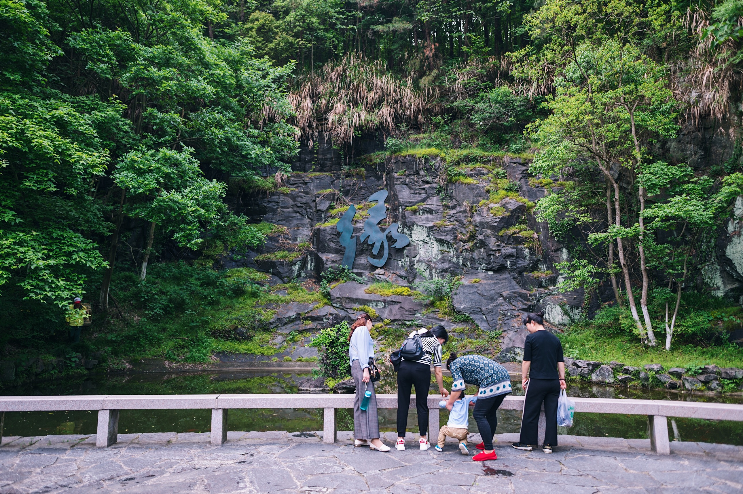 沿着流泉旁的小径前行,抬眼看着石壁,风格各异的书法和诗句无意之间成为了一道亮丽的风景线。不管是这里的瑰丽的书艺还是各种优美的诗句,都值得我们去探索和学习,这里应该是亲子游和学生的夏令营的好去处,在游山玩水的同是还能学习到知识。