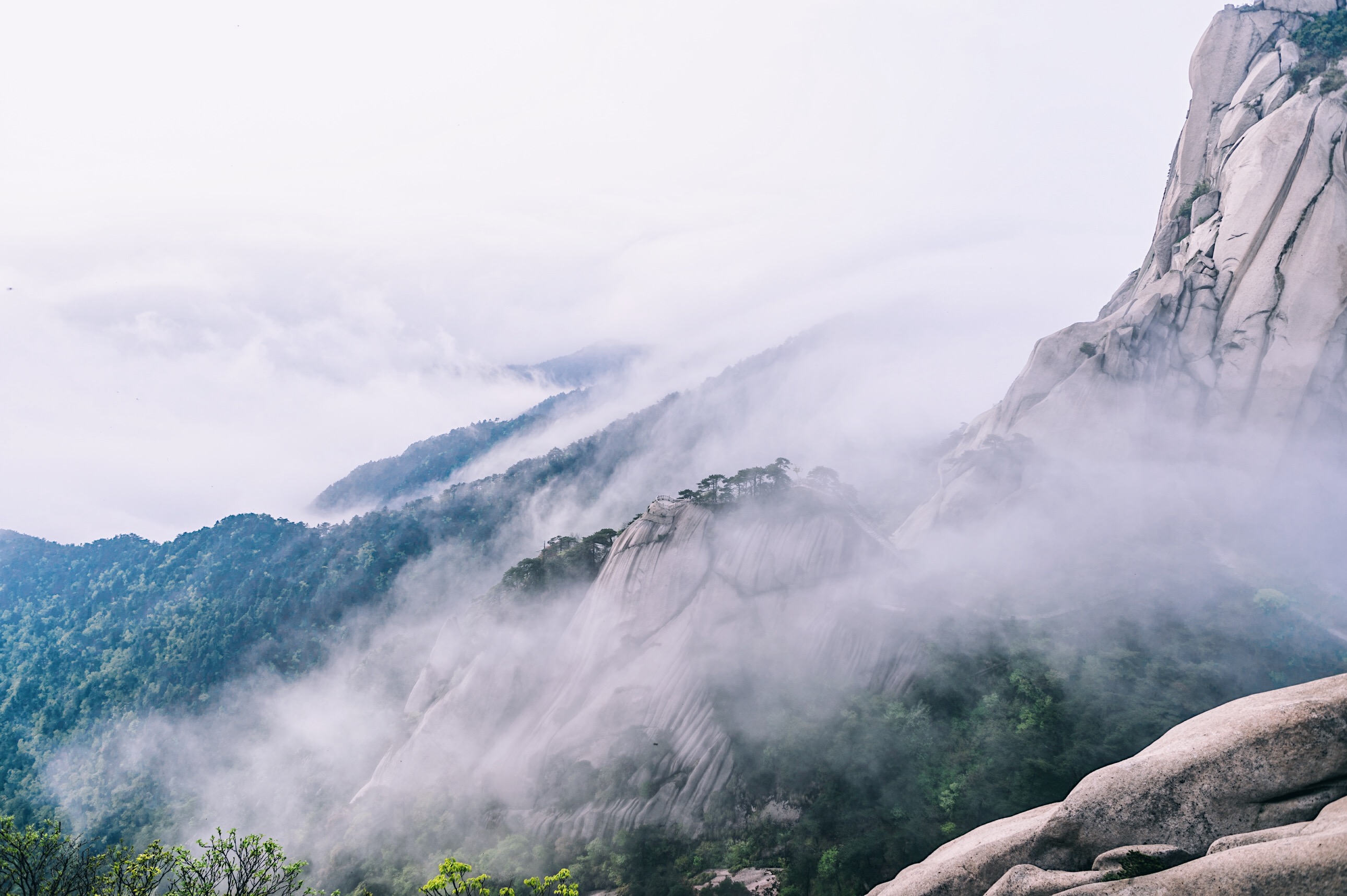 天柱山 不仅仅只有着美丽的一面,他也有自己的“个性”所在。他也有很险的地方,整个景区共有18处悬崖,这点在我刚知道的时候也觉得有点不可思议,一个不是特别大的景区,竟然有这么多。自然也少不了有很多道路就在悬崖边上,尤其是在,向来不恐高的我,在这里的某些简直成90度的山道上确实有点怂了。想想所有道路都是人工一点点凿出来的,发自内心的向他们致敬。
