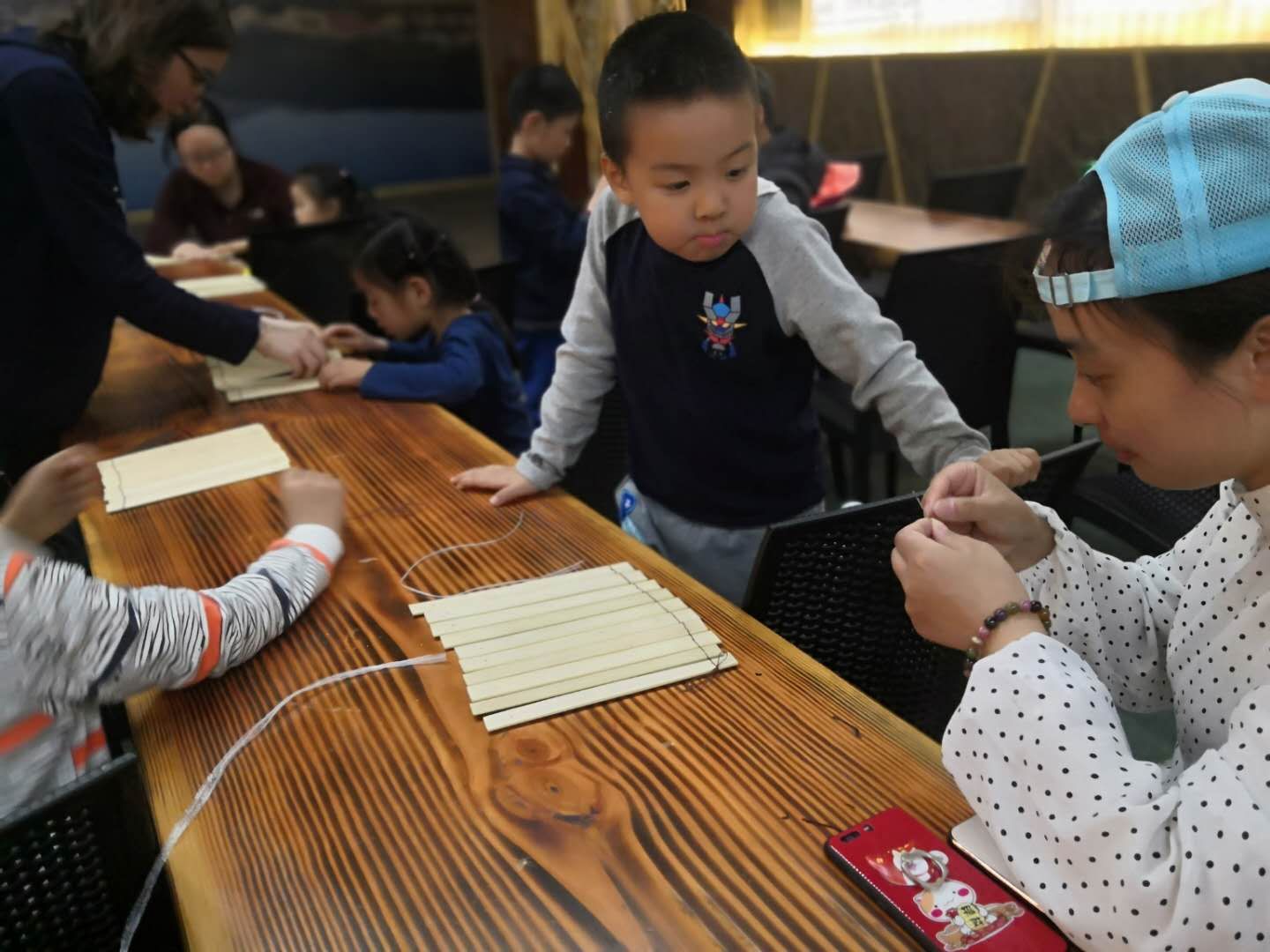 在蒸竹筒饭的时候顺便吃了午饭,午饭结束后,小朋友们一起来上课,自己动手学做竹简!