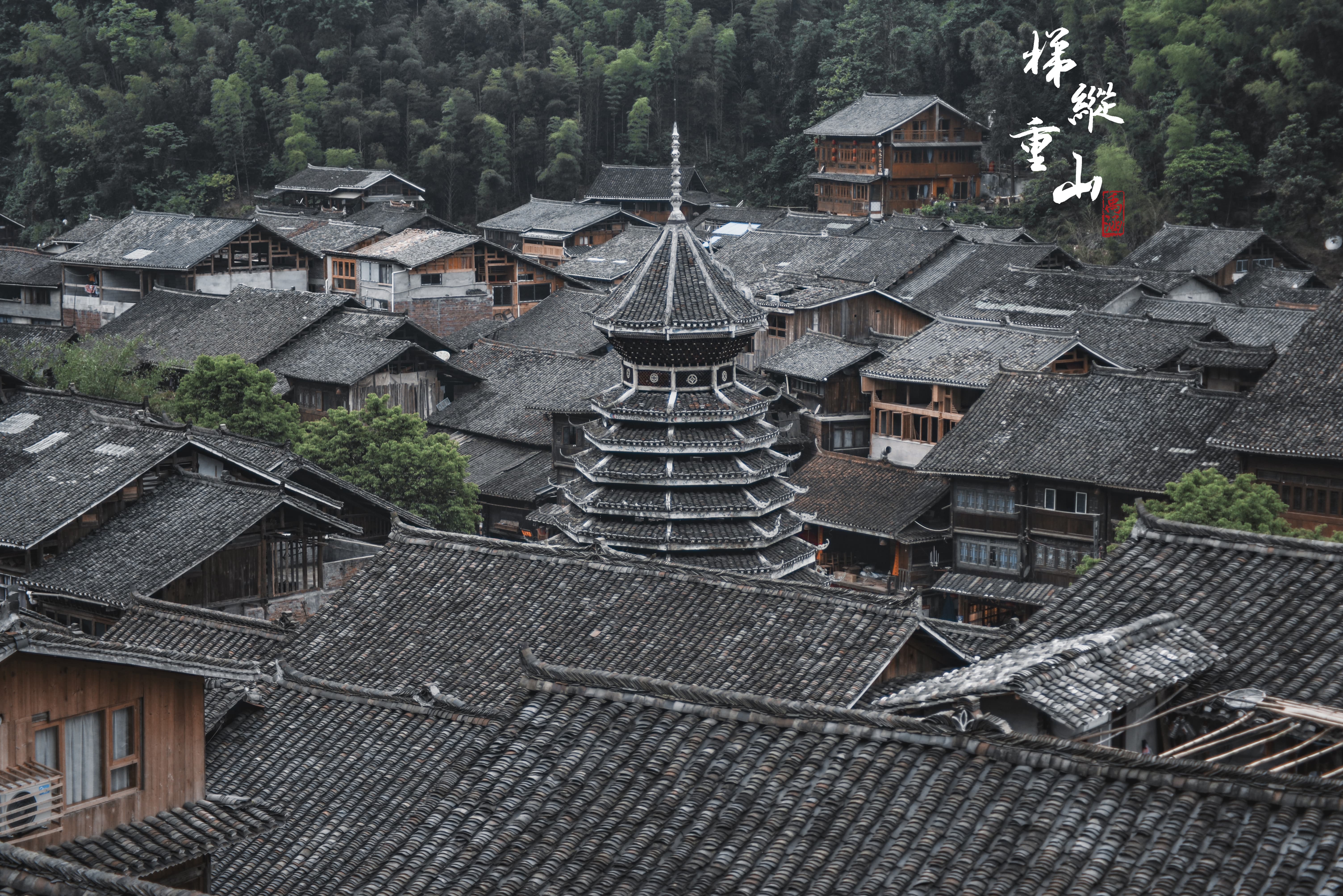 肇兴寨子个人觉得最好看的就是五个鼓楼和房顶,所以吊高角度或者无人机是最好的拍摄方式,这里总结几个拍摄点可供选择。