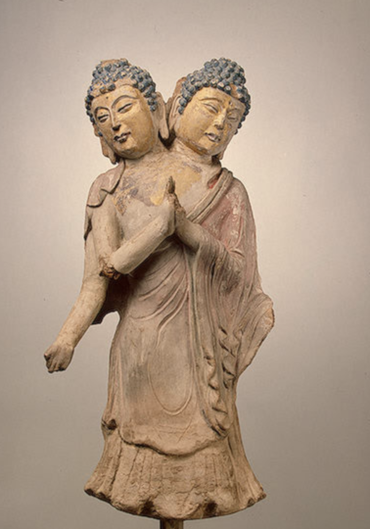 还有这对堪称极品的唐代雕塑:敦煌莫高窟321窟唐代泥塑护法兽。虽然同为不同兽类的重新组合,但以极具写实的造型手法,真实再现兽类各个局部特征,狮身、犬脸、鹰爪,双耳竖起,鬣须卷曲,并完美地统一于一体。