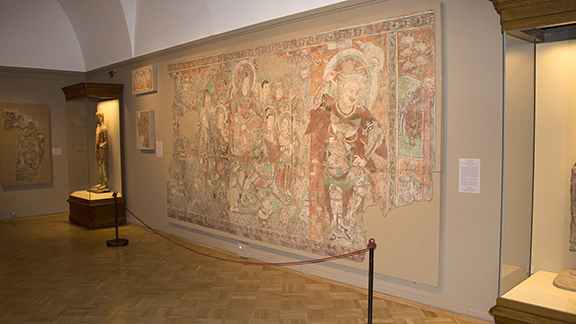壁画高232厘米,长339厘米,根据介绍是从石窟中最大的洞里切割而来,经过大量的翻新工作,才恢复成这样的。
