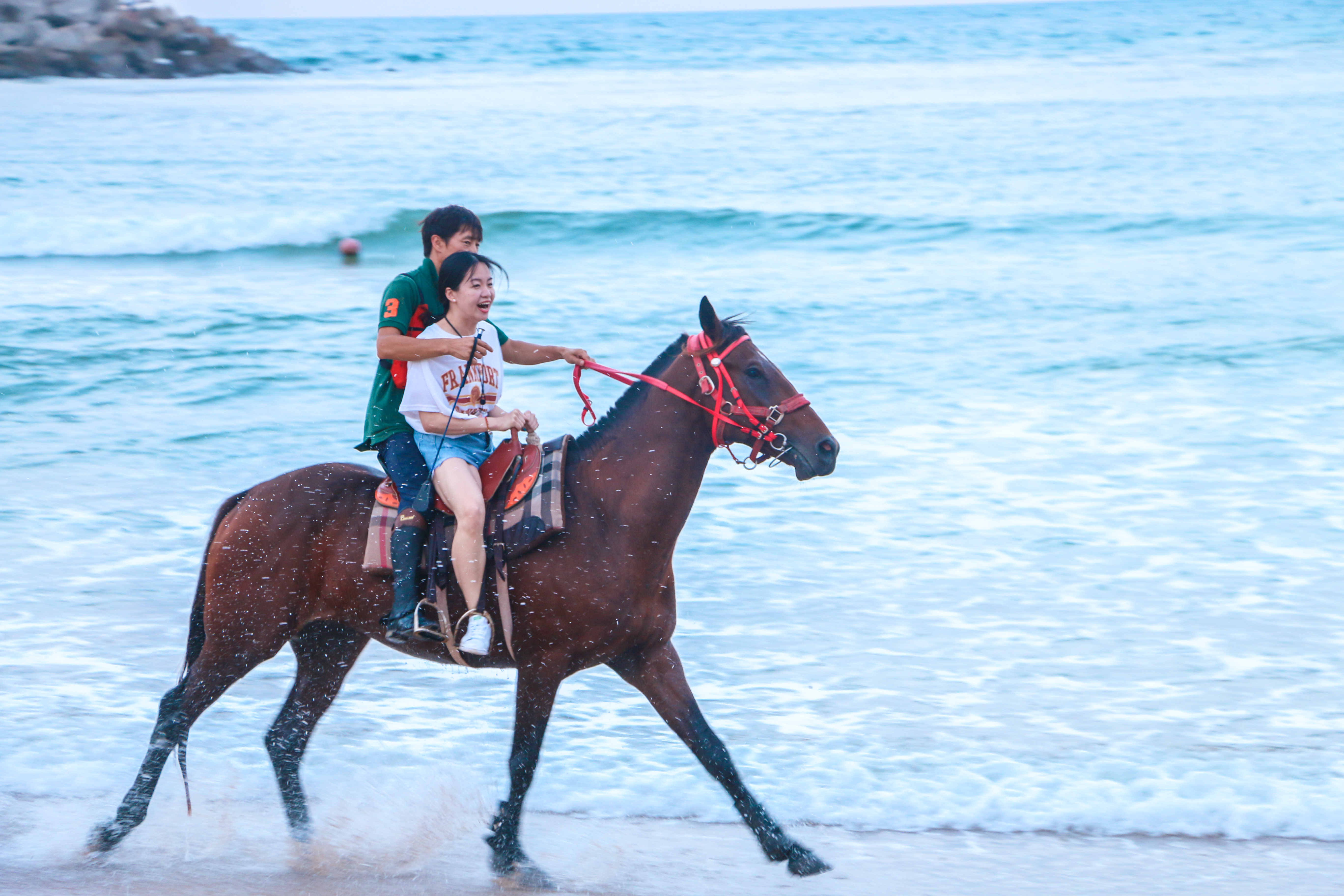 在香水湾富力万豪度假酒店,让人心动的还有海边骑马的体验,这匹马据说在海南的赛马中拿过奖,在驯马员的带领下它十分乖巧,马儿除了草原,也喜欢在大海里奔跑,而陵水香水湾的海似乎更加自由。