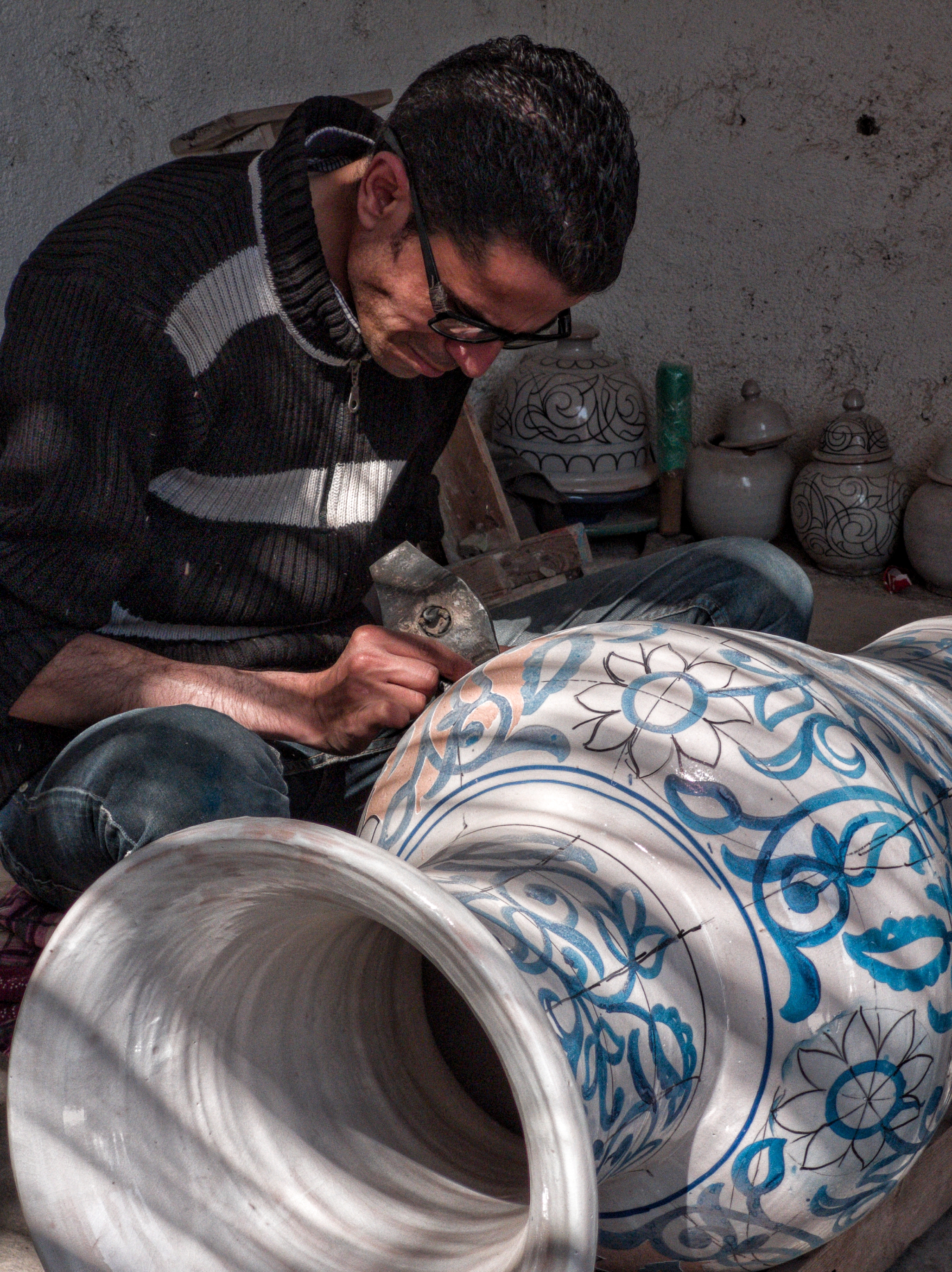 菲斯以市区9,000多个街道交错密布的老城区闻名,狭窄的街道和挂着帘子的市场上,到处都是传统手工业:染色作坊、皮革加工厂、各种手工作坊、餐厅、肉店、青菜店等传统手工加工店,虽然是手工制作,但其世界一流的品质却颇享盛名。