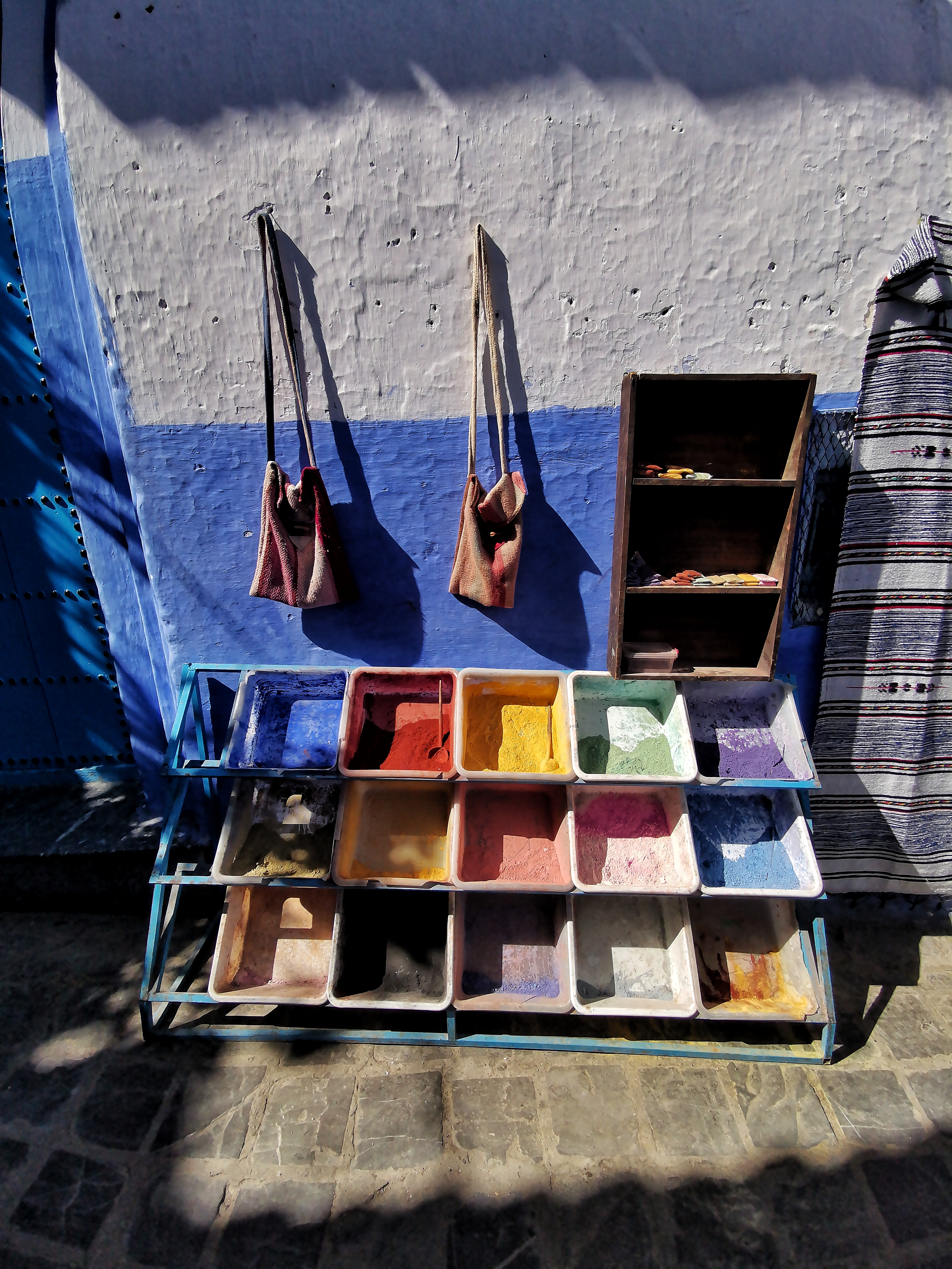 舍夫沙万城镇始建于1471年,当初的舍夫沙万还不是蓝色的,只是传统的阿拉伯式的防御工事,位于老城区麦地那的小堡垒至今仍然存在,直到1930年后,舍夫沙万的外墙和路面才陆续被粉刷成蓝色,用于降温和避蚊。 这里远离大都市的繁华,大多数民宅门口、阶梯和墙壁都被涂绘成淡蓝、深蓝、天蓝、海蓝、宝蓝等各种蓝色,给人的感觉是干净、平静、安静。进入到小镇里如同进入到蓝色的世界,让浮躁的心立刻安静了下来,仿佛置身世外一般。