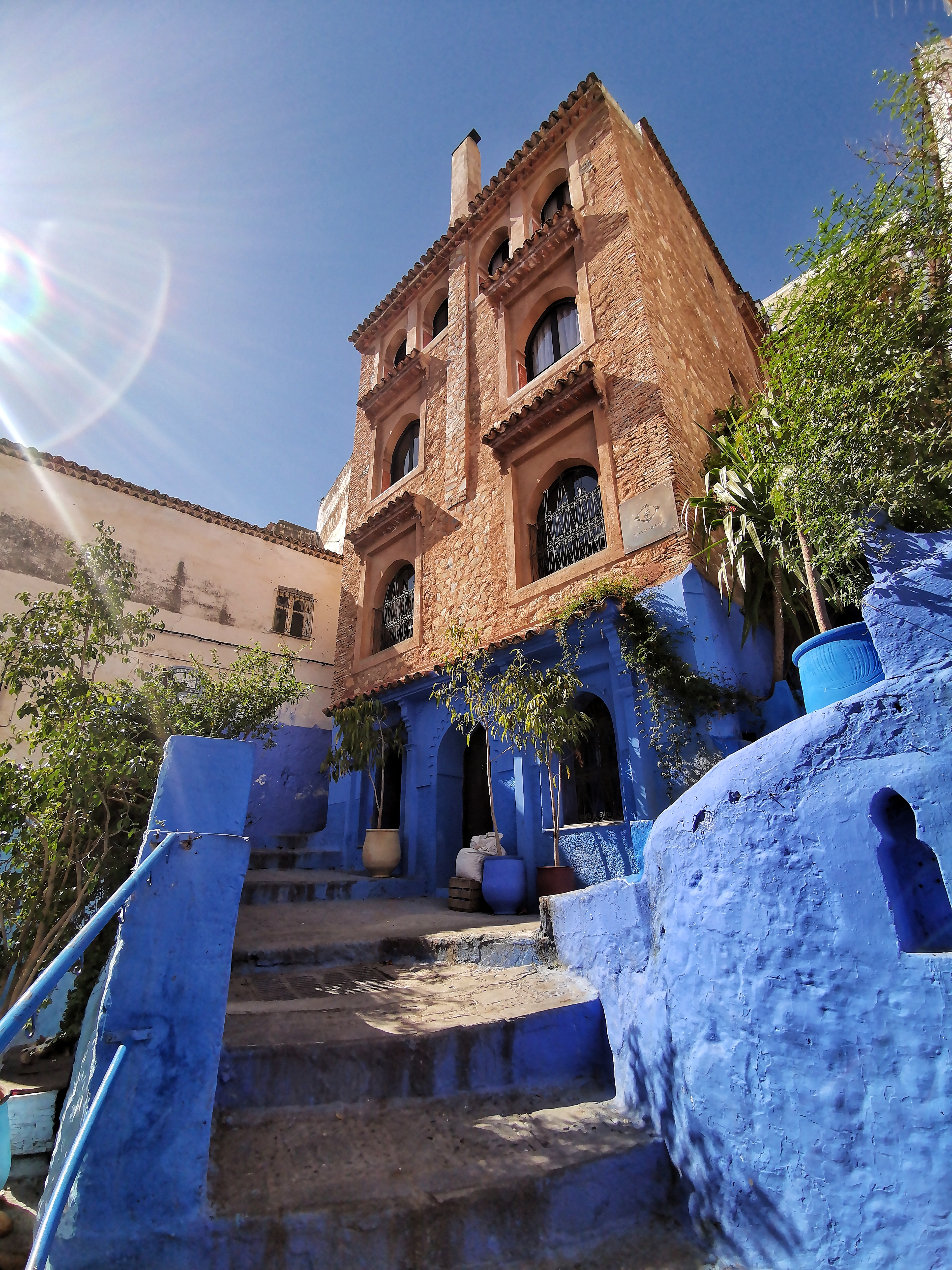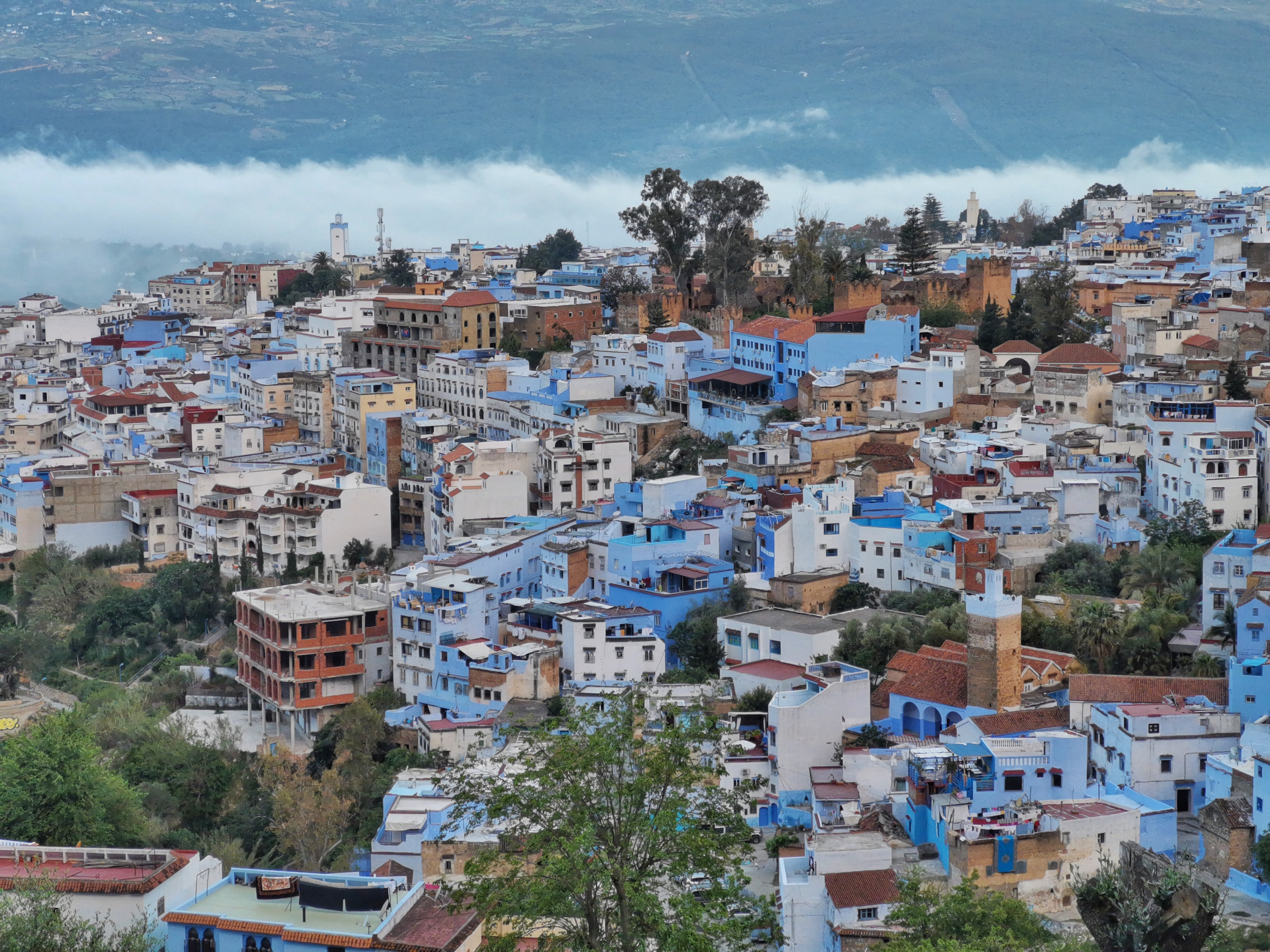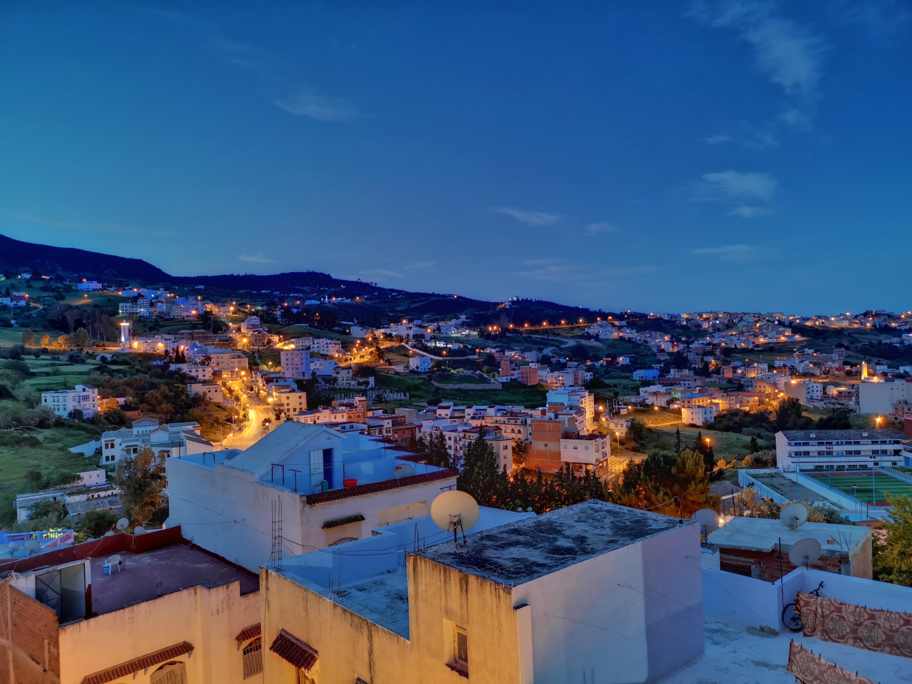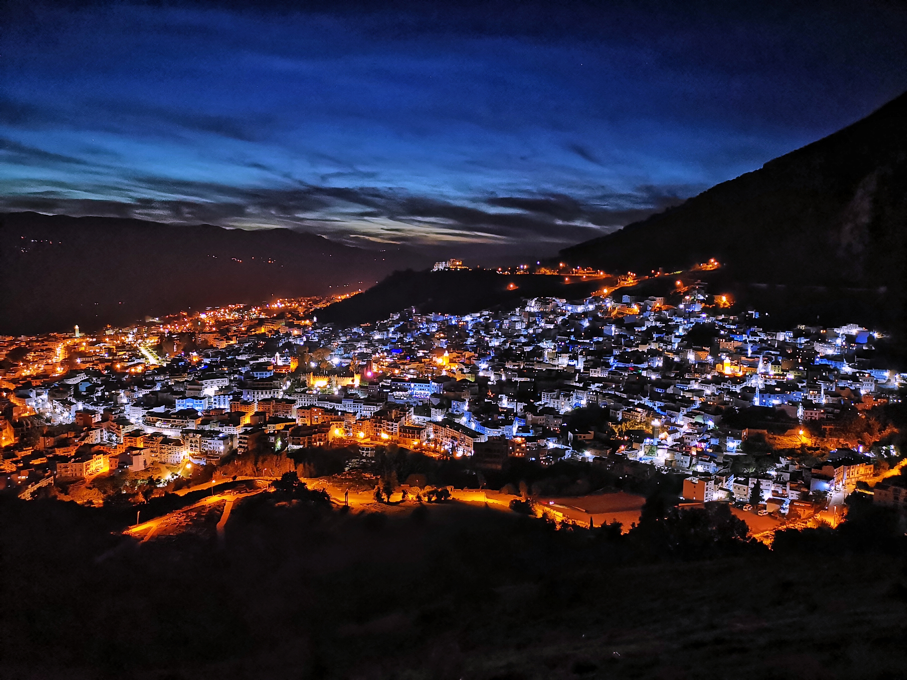 一座纯白色的安达卢西亚式的清真寺位于舍夫沙万老城东南侧的山腰上,可以眺望蓝色小镇的全景,日落时分,景色格外迷人。