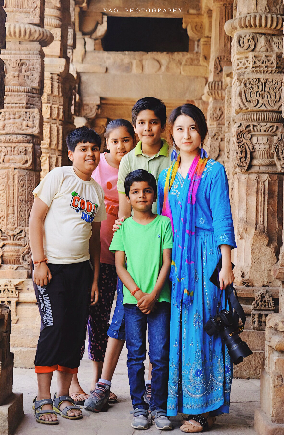 他们看到我们超兴奋,“哄”得一下子全围过来,跟我们拥抱、握手、打招呼,还有一个小女孩一直在摸我的耳环,被快乐氛围感染的我和她们一起娱乐、合影,她们还教我们唱印度歌、跳印度舞。