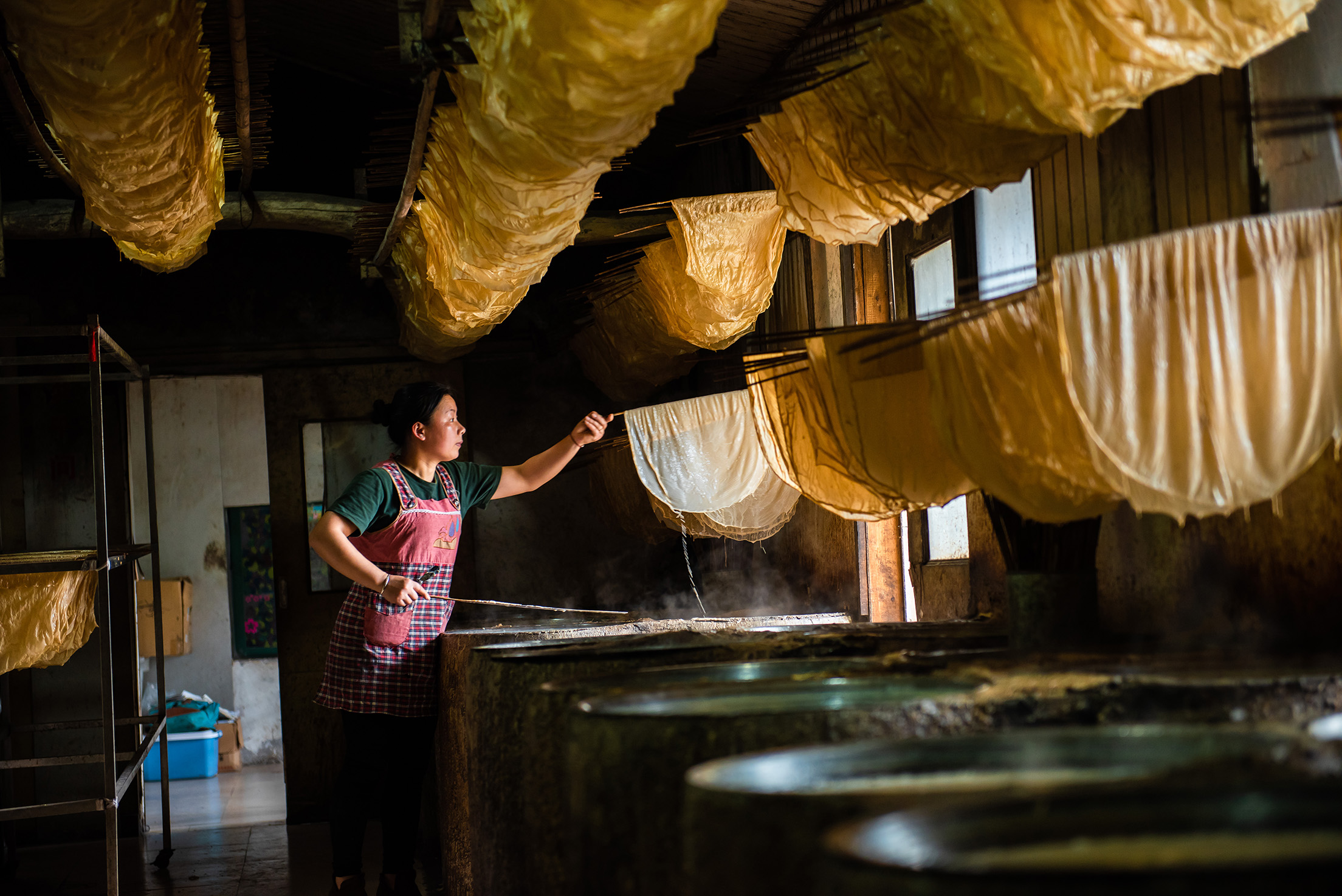 层层叠叠的豆腐衣挂在架子上,韵律感十足。