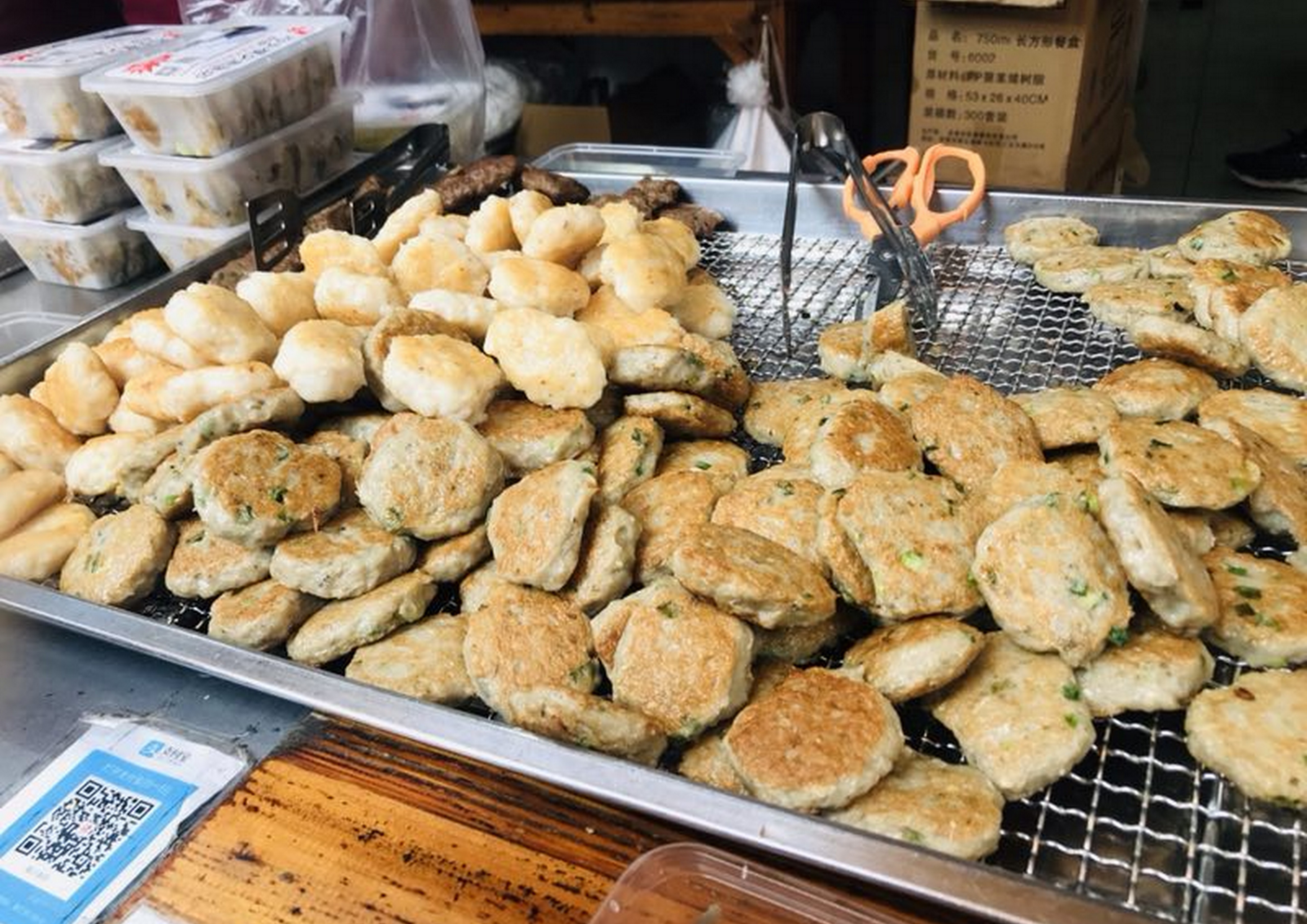 其实权少之前只不过是做服装生意的,后来在老婆的鼓励之下才半路出家做起饮食,而作为地道均安人的权少,也非常想将均安的特色小吃推广出去。好在权少的爸爸-黄日全本身就是一名厨师,有着差不多50年的入厨经验。三年前权少在爸爸的指导下,慢慢学习怎样做鱼饼。然后在经过一年日复一如的手打鱼胶的练习,等鱼饼的口感味道稳定了才在逢简水乡选址开了这家鱼饼店。现在,他做的鱼饼已经在当地小有名气!