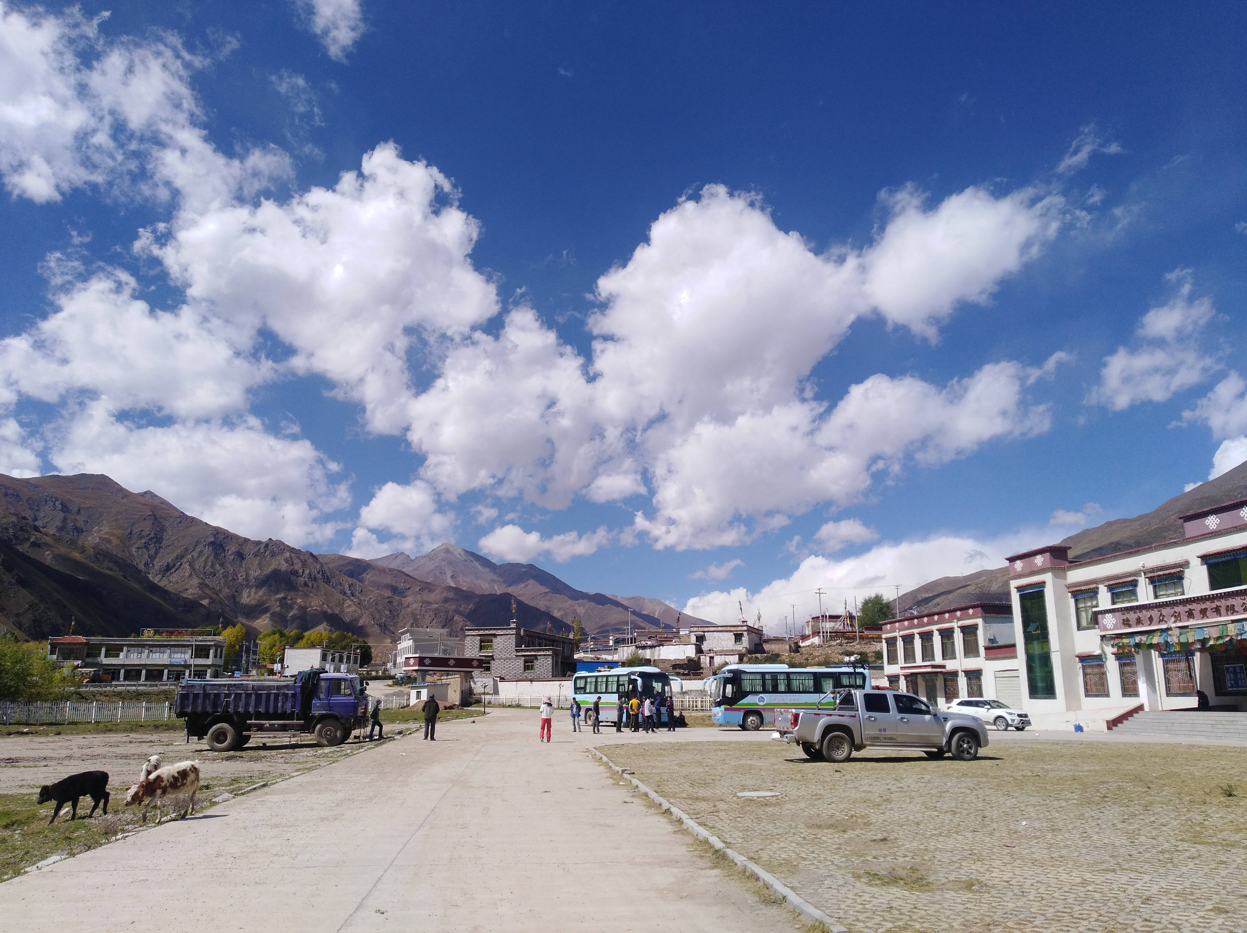 9月26号,西藏的路大部分限速,边防关卡检查。每一处停留都是在蓝天白云下游荡的时间,我们多了许多中途小憩的机会,20分钟的停留休息,在每一处土坡田埂都能玩出花样。