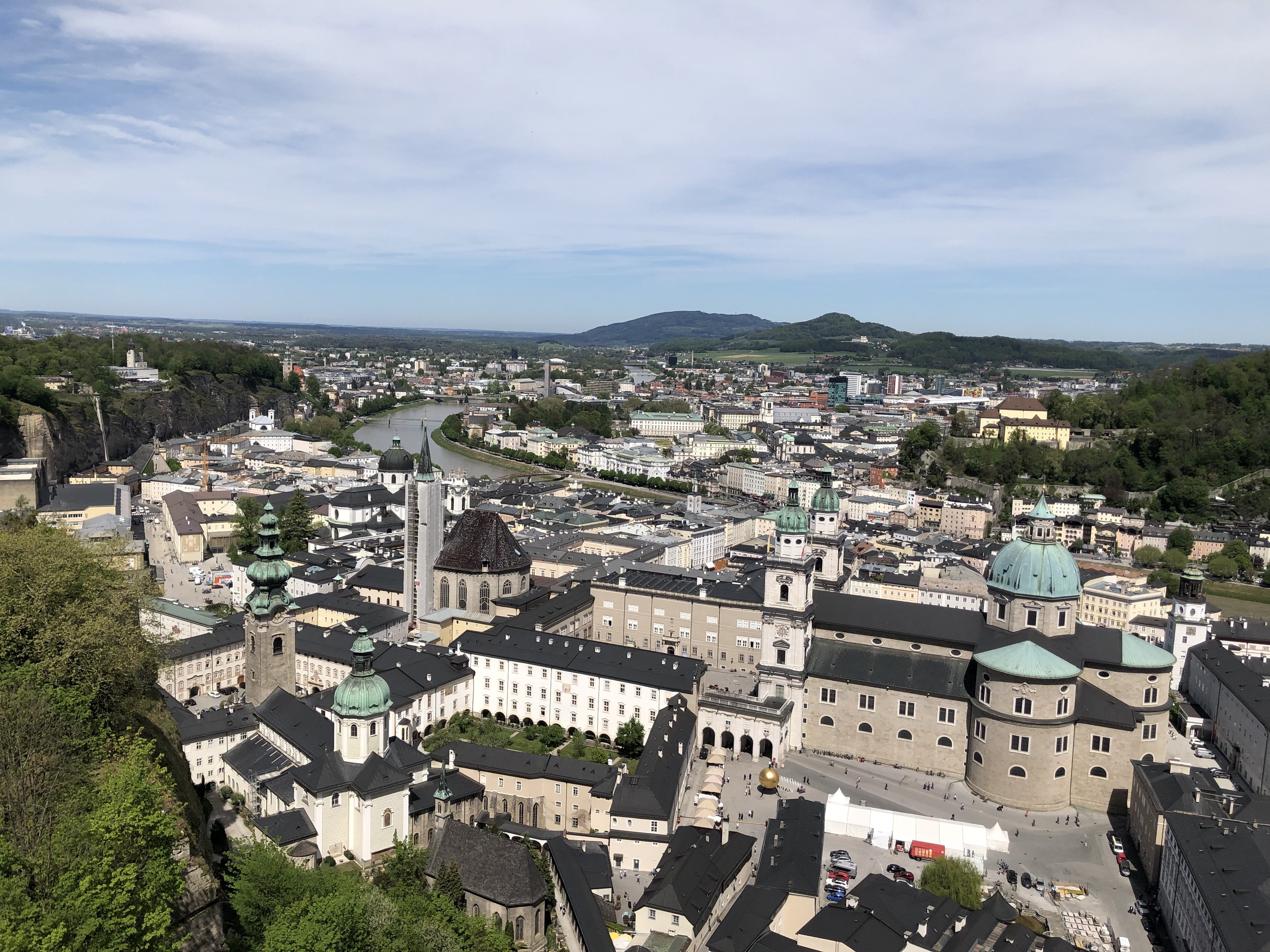 Salzburg——看名字都知道这是盐堡的意思,在千年以前,萨尔茨堡因附近发掘的盐矿而累积了巨大的财富,不仅吸引大主教来此建设城堡,更有许多达官贵人来此定居,从而发展成现今著名的商业街。中古时代充满浪漫风情的小巷在雄伟的豪宅之间伸延,高高耸立的萨尔茨城堡和水流湍急的盐河交相辉映,绿树成荫的花园和千姿百态的喷泉,把这座城市装扮得更加美丽。