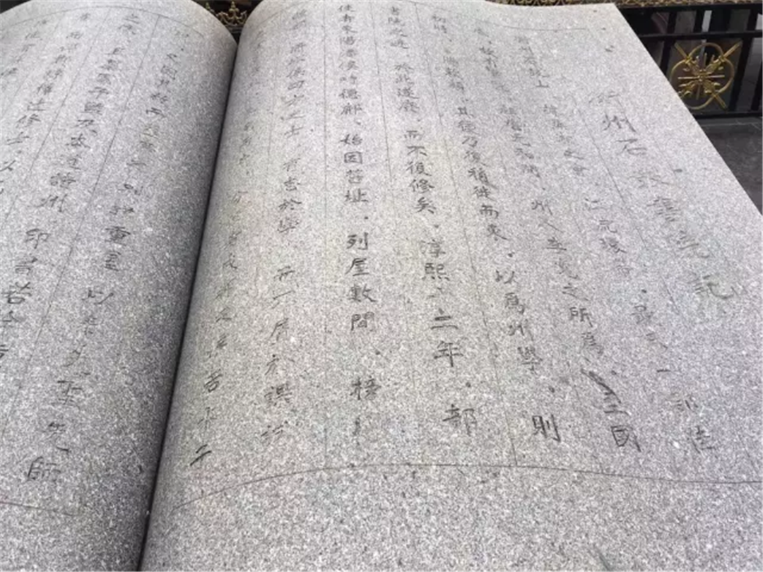 在石鼓广场上,刻着朱熹的《石鼓书院题记》的巨型石书非常引人注目了。“翻不动的书”大喇喇摆放在外面,行人来来往往,虽然翻不动,但是丝毫不妨碍人们体会石鼓书院绵延千年的文化。