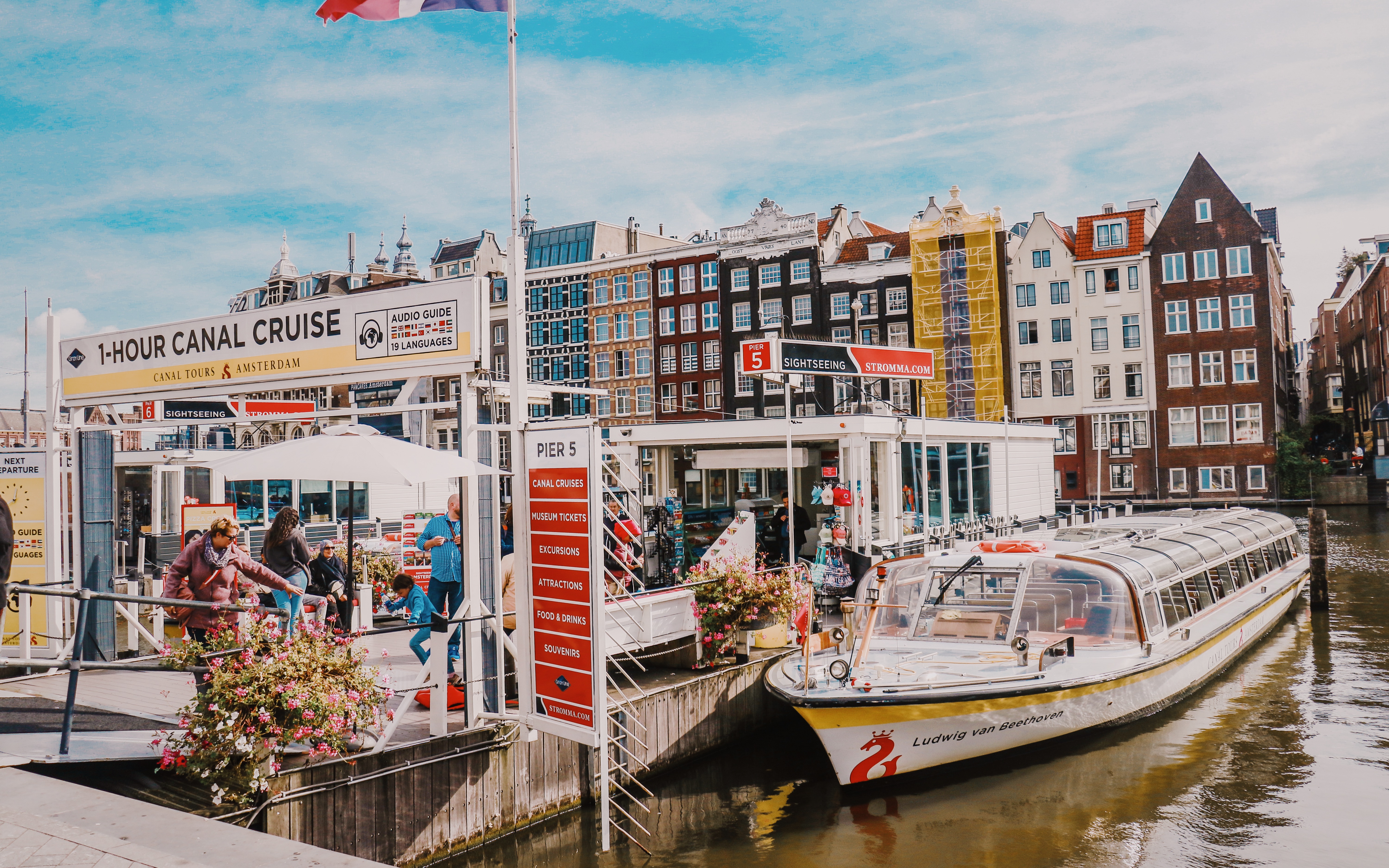 市中心有很多的游船公司,他们也会提供乘船游览阿姆斯特丹的服务,我们选择的是lover canal cruise游轮,绕着运河逛阿姆斯特丹一圈全程大约一小时的时间,13欧每人,可以选择中文讲解,一边游船一边欣赏河畔两岸的浪漫风光~
