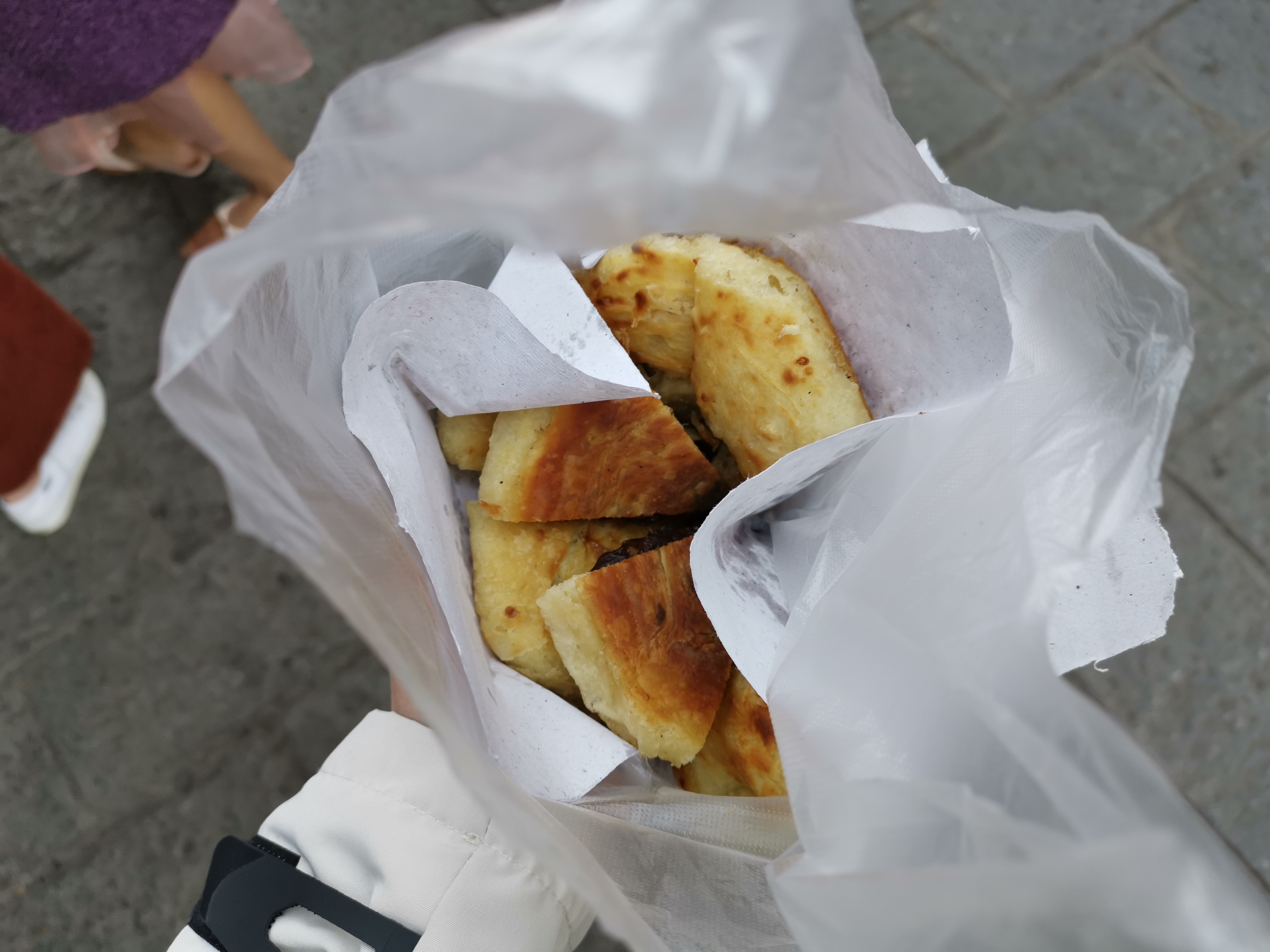 我们去尝了上过《舌尖上的中国》的喜洲粑粑,用油煎好之后再用炭火烤一会,刚刚拷出来很香~