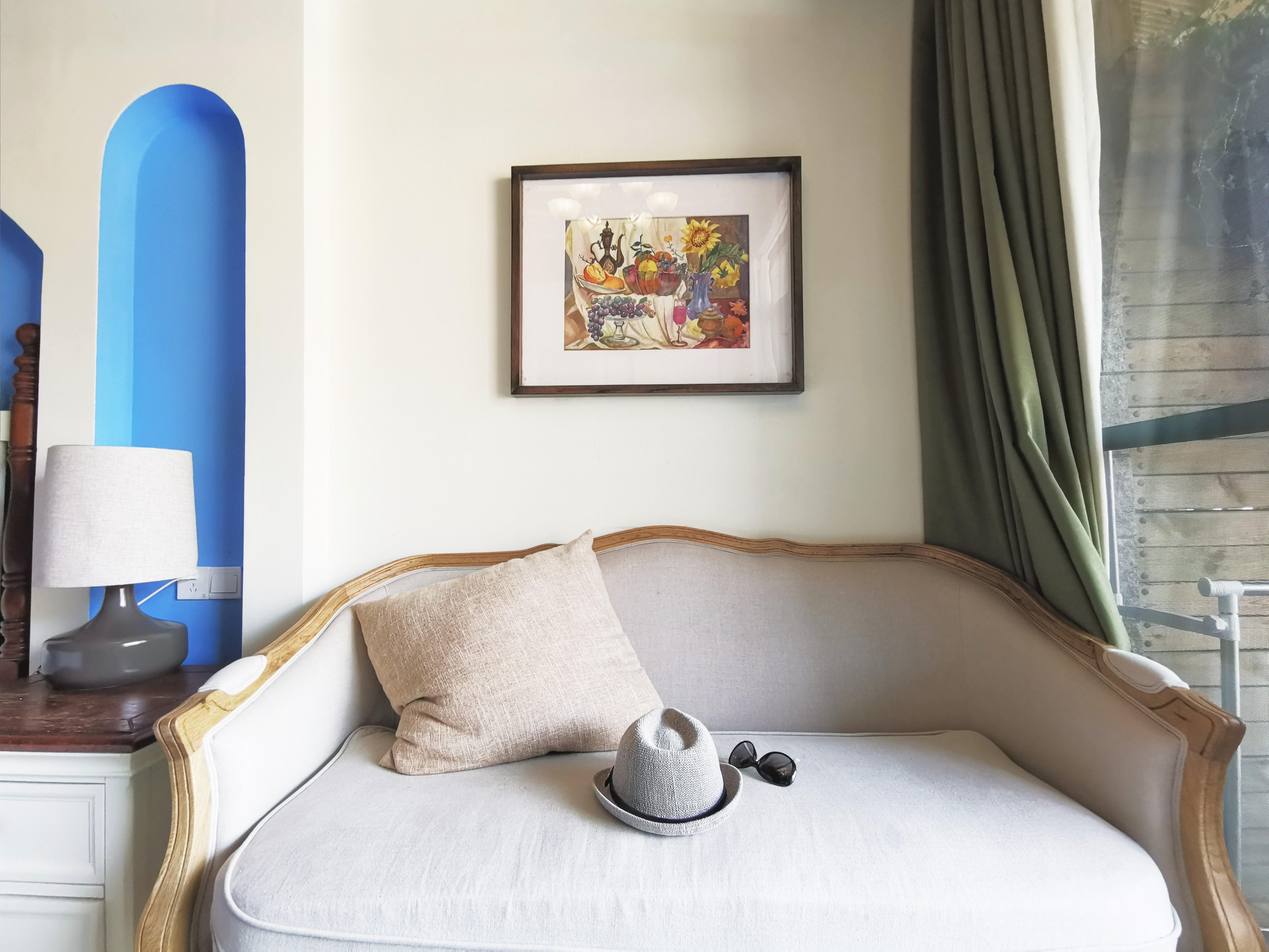 上古典淡雅的室内风格,住起来特别舒适,原木的素色、清晰的纹理、随意的形态,无不勾勒出自然的气韵与情致,躺在柔软舒适的大白床。