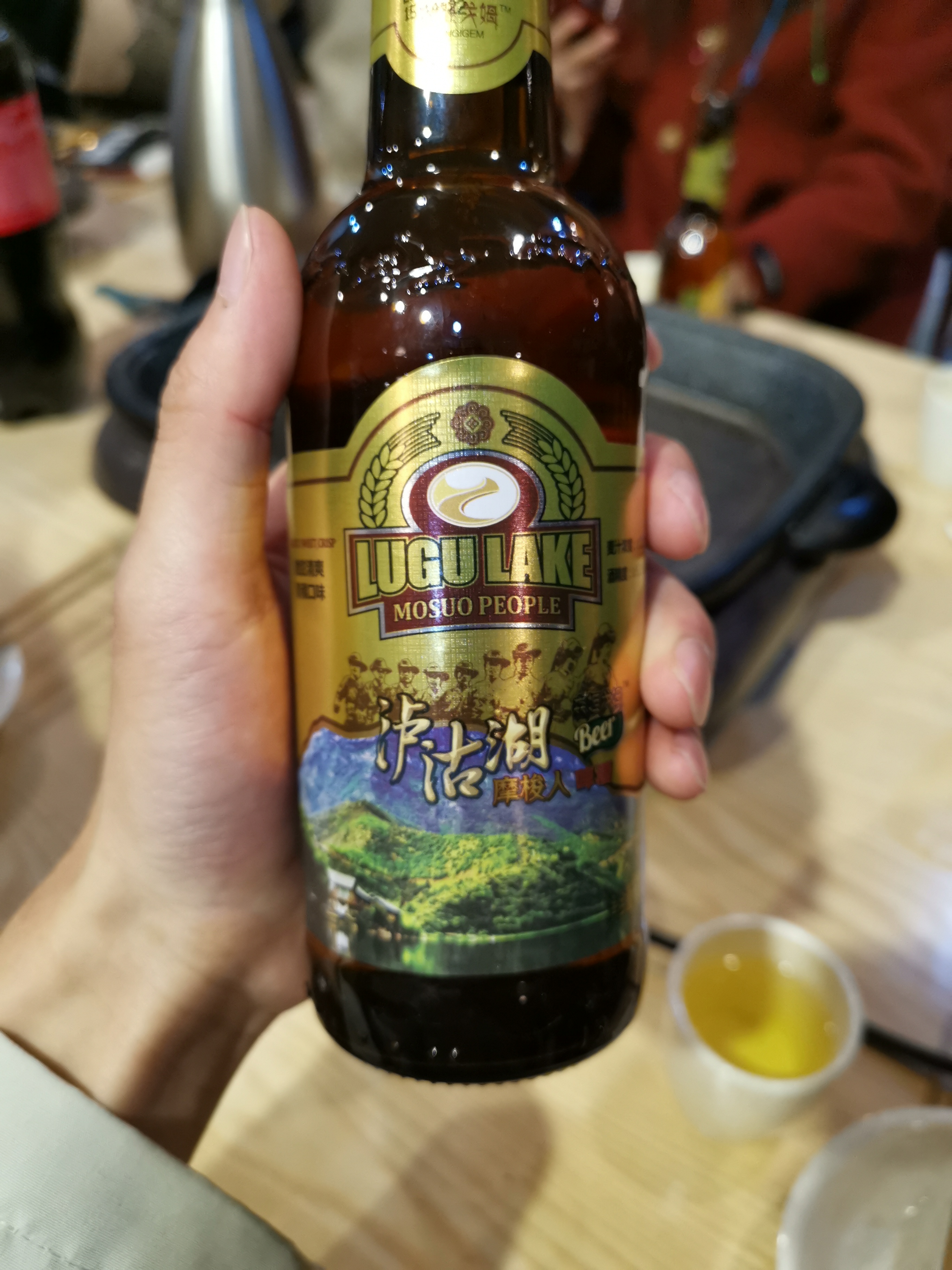 在大理喝了风花雪月,来泸沽湖也要尝尝泸沽湖的啤酒,个人觉得泸沽湖的啤酒还没有普通的啤酒好喝,但是不尝尝又觉得缺点什么,总之吃得开心最重要。
