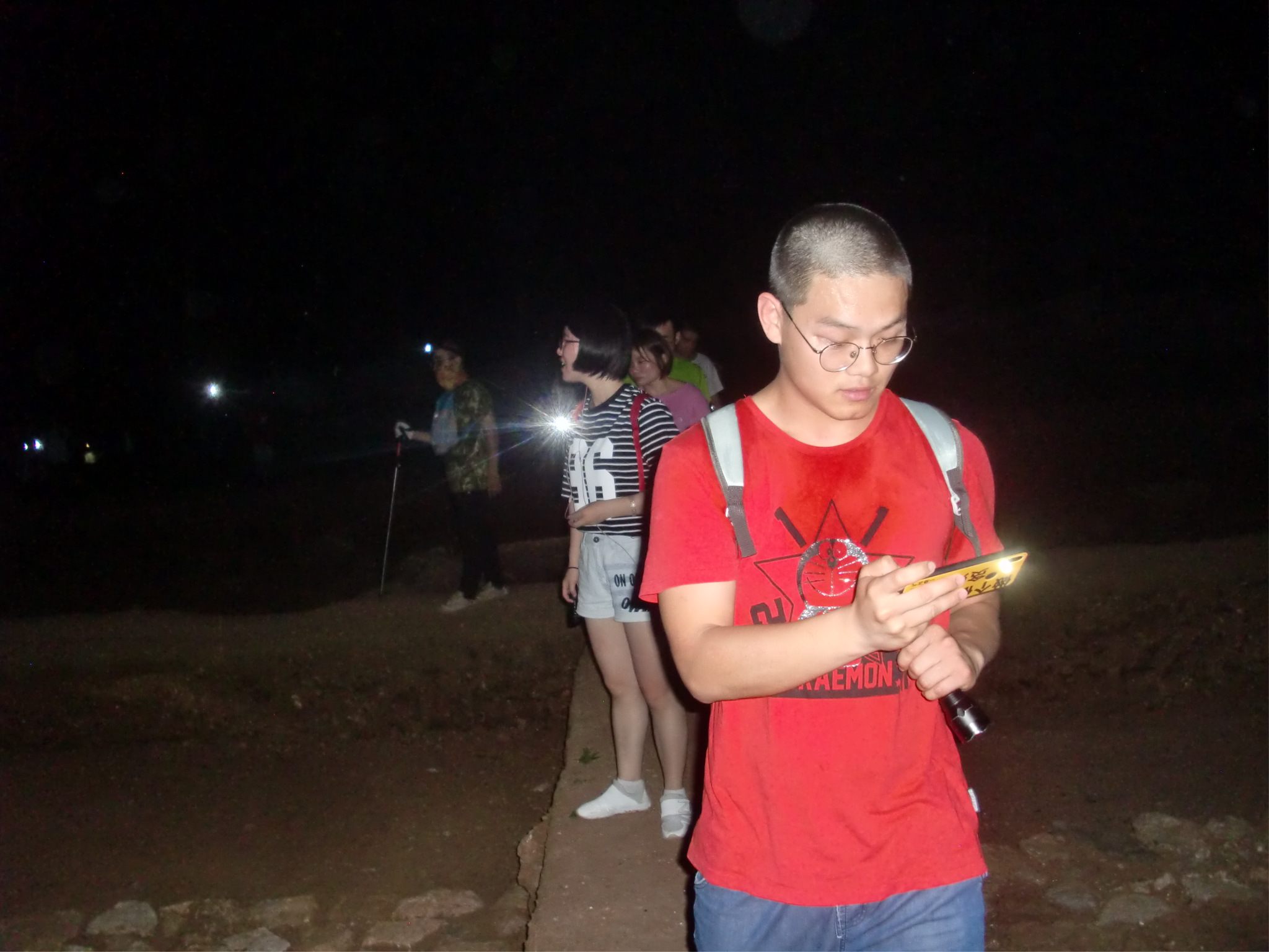 今天的行程,加了标准线3个字,是因为到终点刚好用时2小时,没有一分钟的偏差,非常标准。线路叙述如下,陶瓷品市场八卦田牌坊这里合照出发,超亿停车场小路上山,石龙洞造像后面爬土路上坡,将台山经月岩到圣果寺遗址,土路上到凤凰亭。在这里发了四份奖品后,开始返程。经老玉皇宫、天真亭,穿过八卦田再回到起点。全程土路多半,台阶少许,运动量适中。