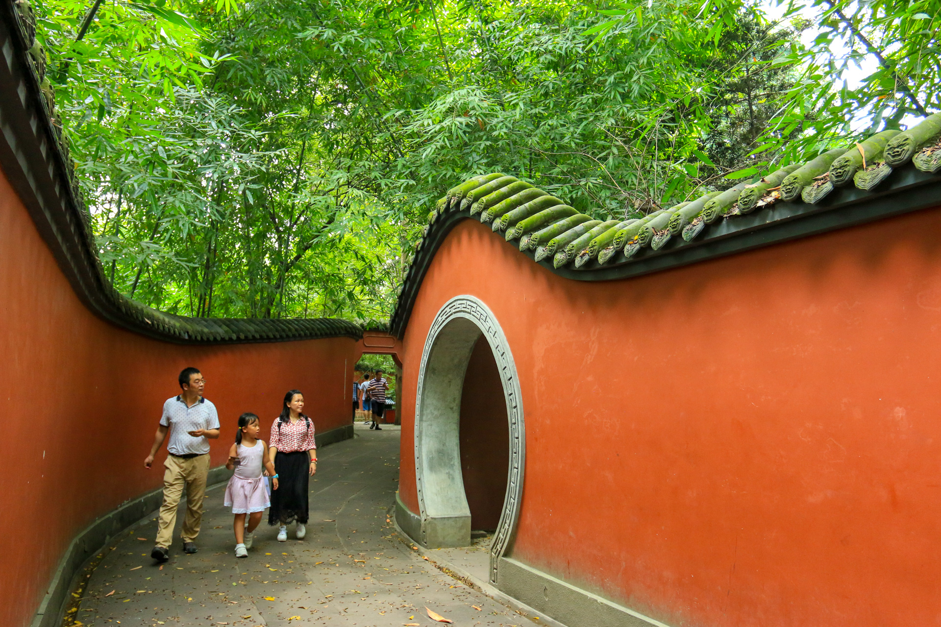 武侯祠整个环境都是红墙绿荫,建筑主要是以明末民初四川民居风格为基础的,武侯祠顾名思义是几年武乡侯诸葛亮的祠堂。全国有许多武侯祠,但成都武侯祠是诸葛亮亲子选址的,重要的是他的初衷并非给自己修祠所用,而是为了下葬蜀汉皇帝刘备的。
