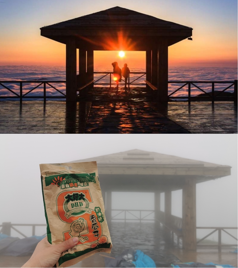时间闪回,那一次也是辛苦的抱着两个西瓜走到山顶,碰到大雾弥漫,