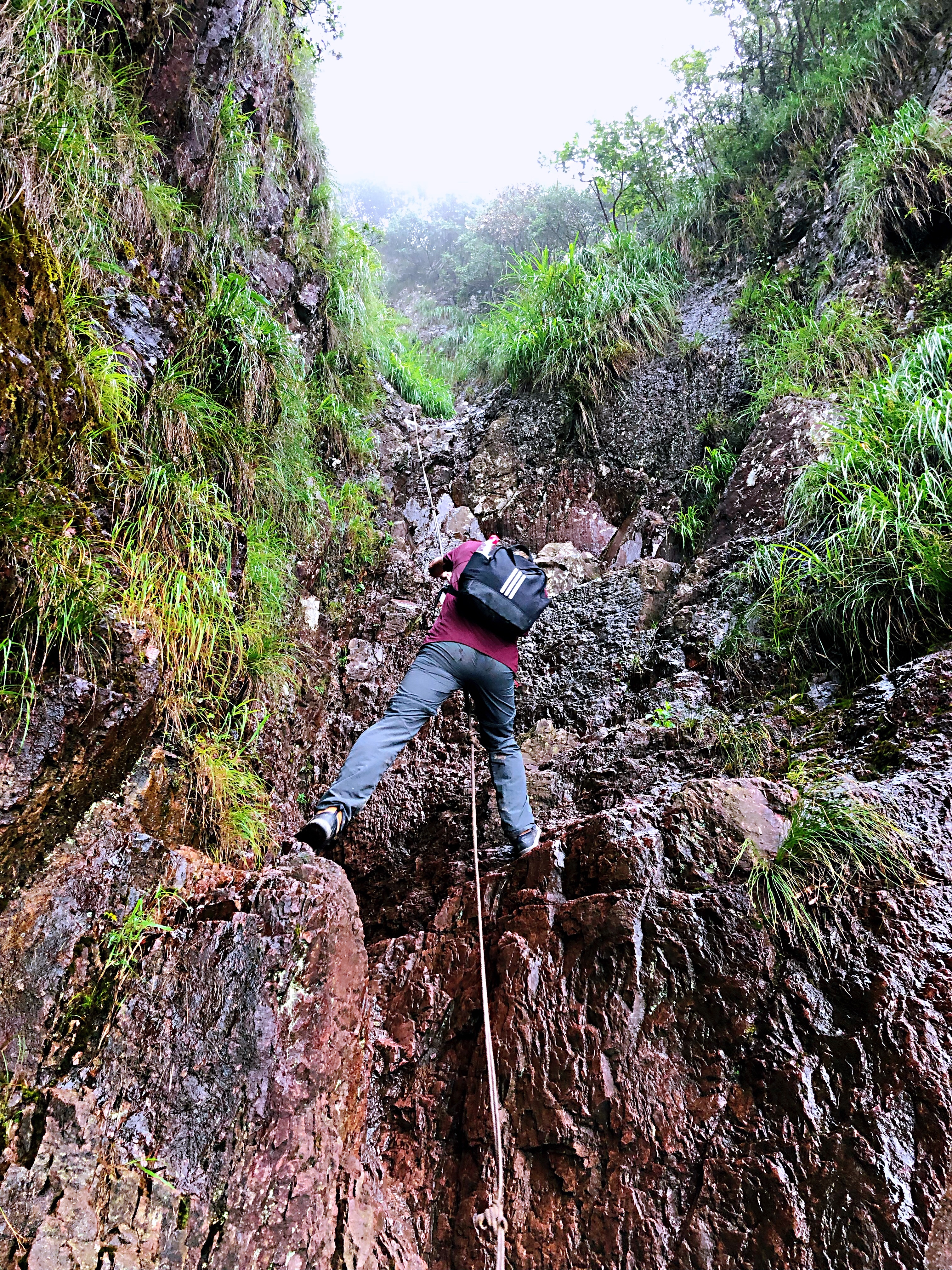 这位小伙伴叫勇哥,是户外教练一枚,超会玩。就连受伤也这么开心,难道是因为领队~~~