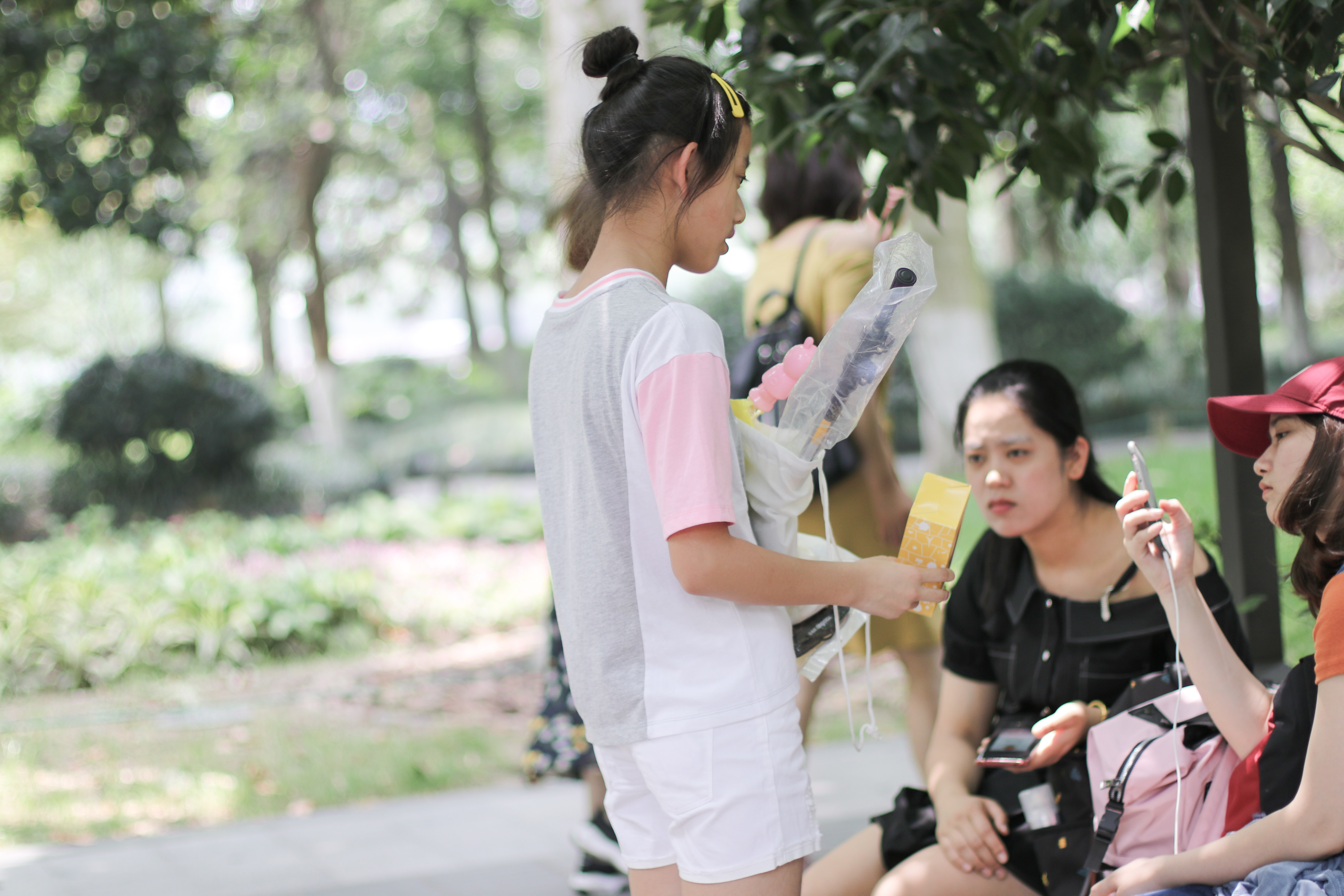 我们胆子比较大的籽籽同学首先喊了一声:“快来买啊~啊~啊~”由他这么一叫,在西湖游玩的游客们一拥而来,开始挑选我们的义卖品。“哥哥,这个多少钱?”一位小妹妹拿着一个泡泡枪对他们几个问道。“这个嘛,既然你这么喜欢,5块钱给你好了。”“能不能再便宜一点?”