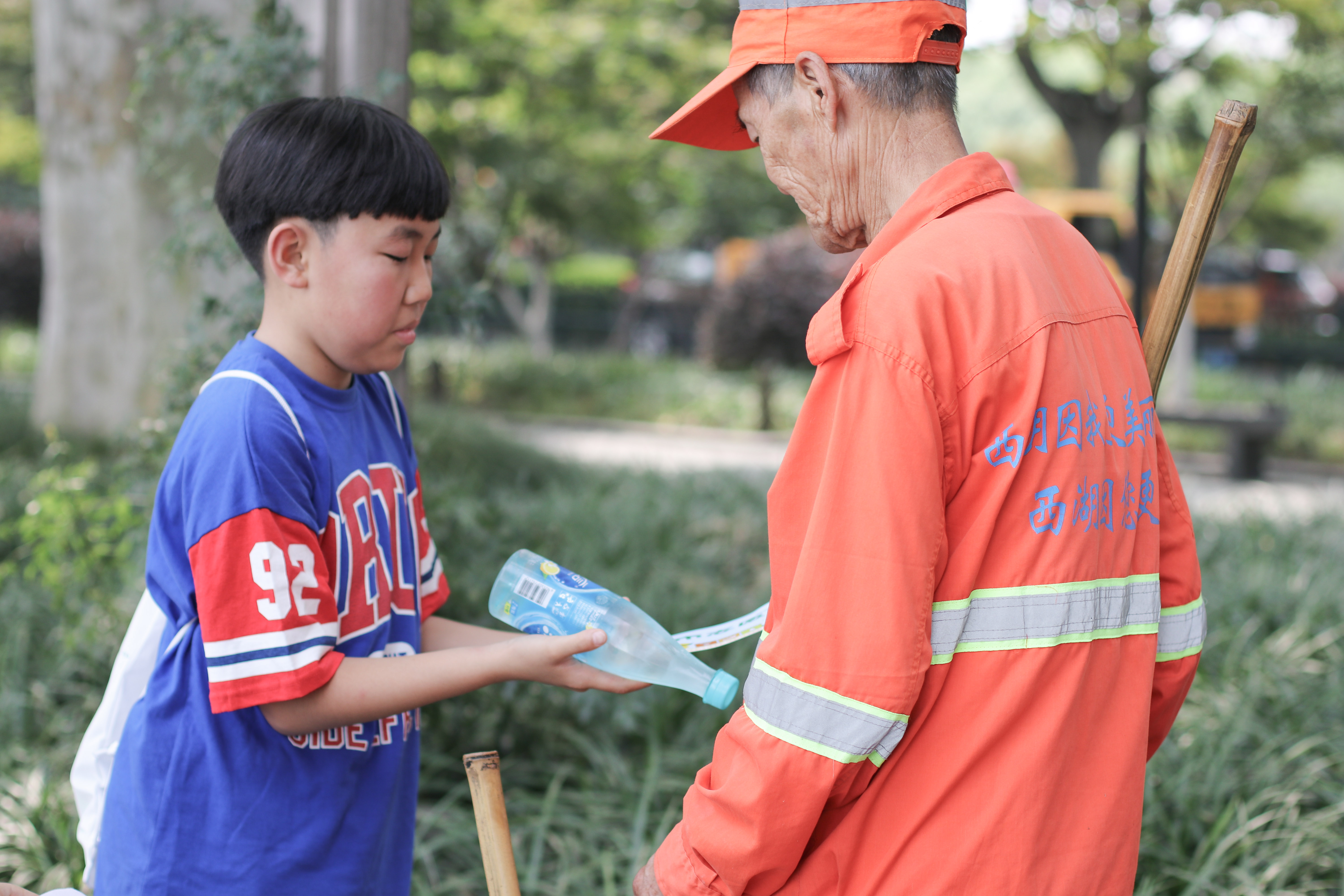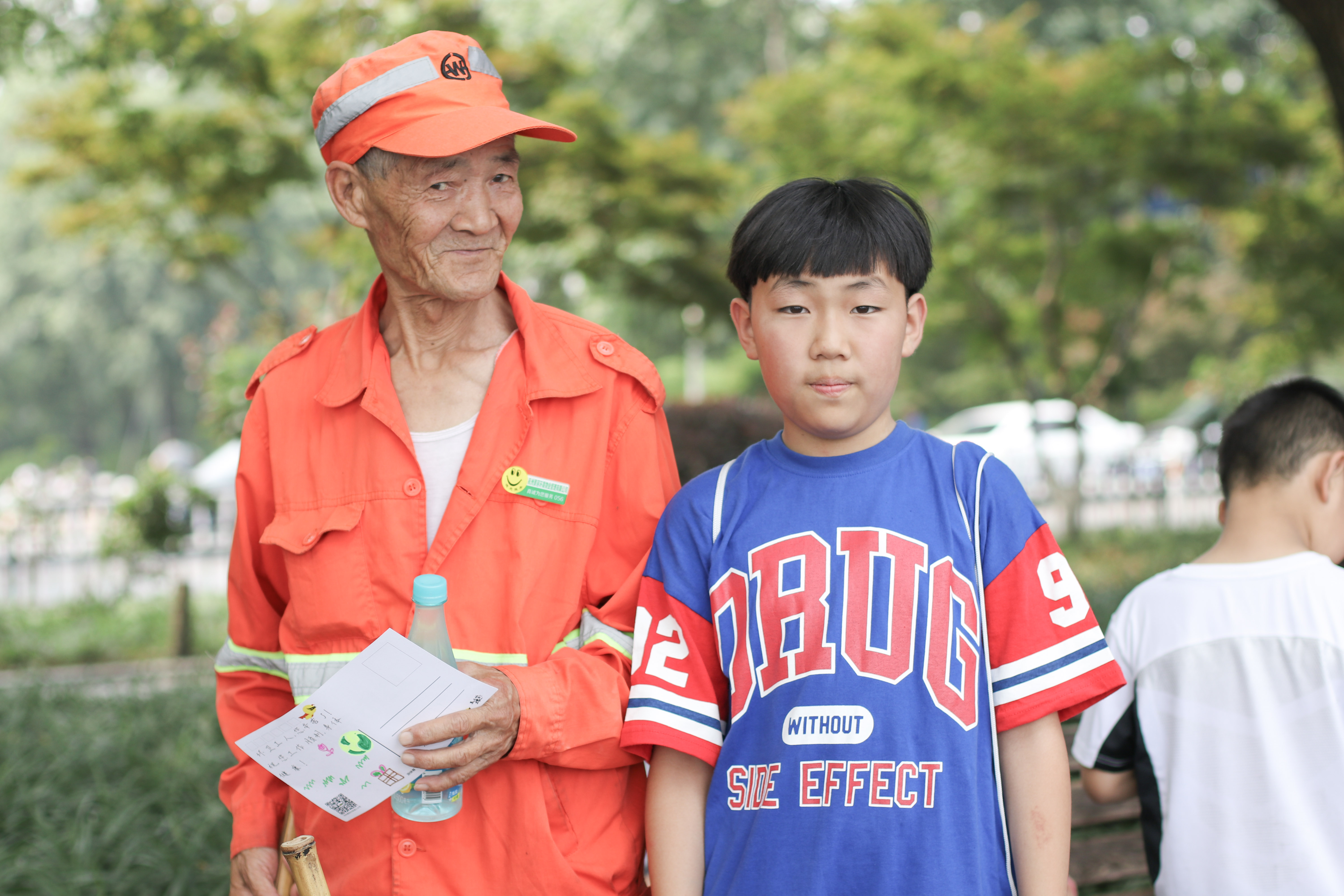 我们所有人拿着义卖的钱,开心的跑到小卖部,买了很多的水,每个小朋友见到沿路的环卫工人,都把自己用勤劳的汗水赚到的礼物,送到了他们的手上,看到环卫工人的笑容,相信对每一个小朋友都是一种触动吧。