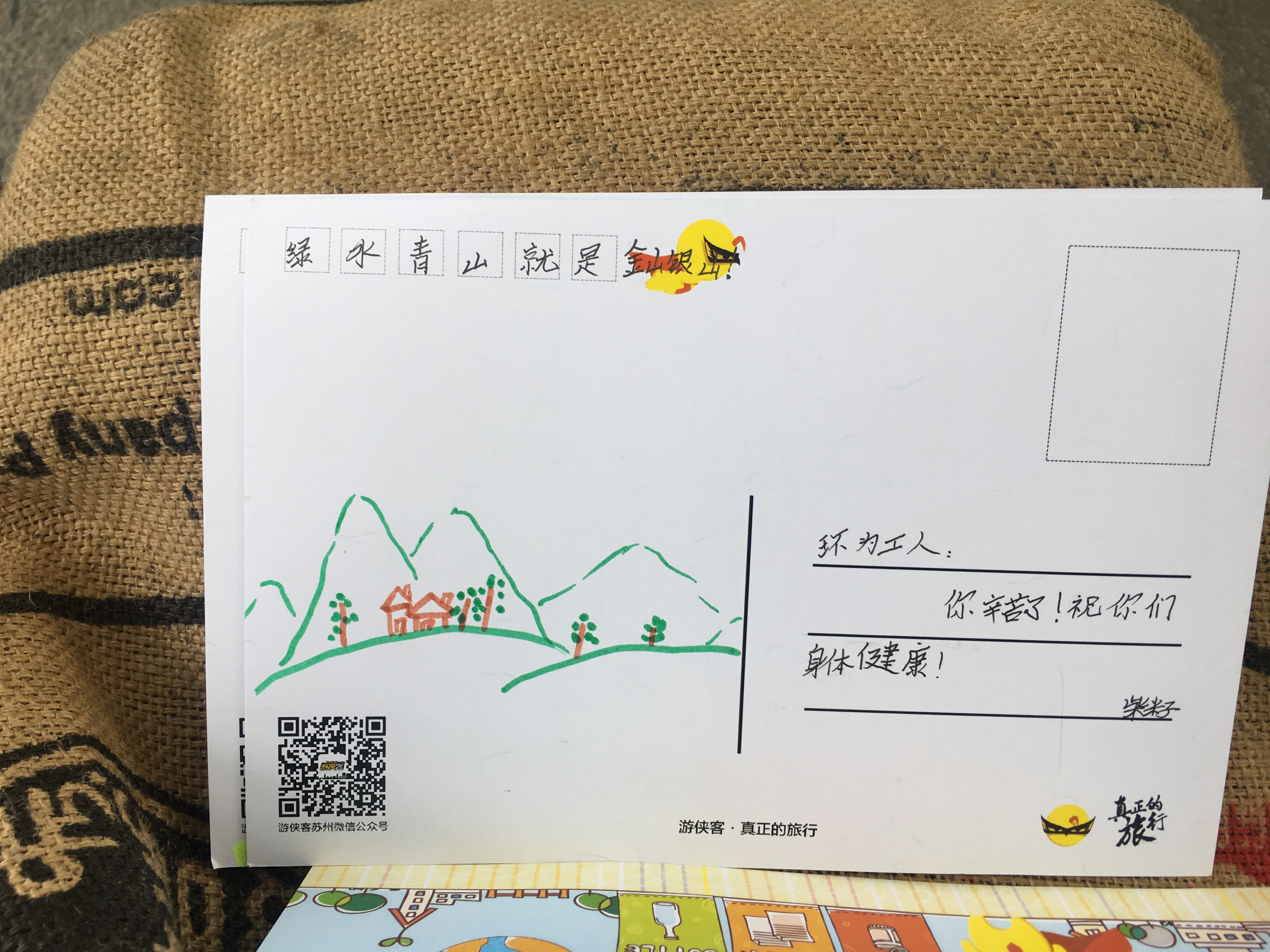 当然吃饱喝足以后,我们就要发放我们任务明信片,让每位小朋友写上一会义卖所赠的对象。