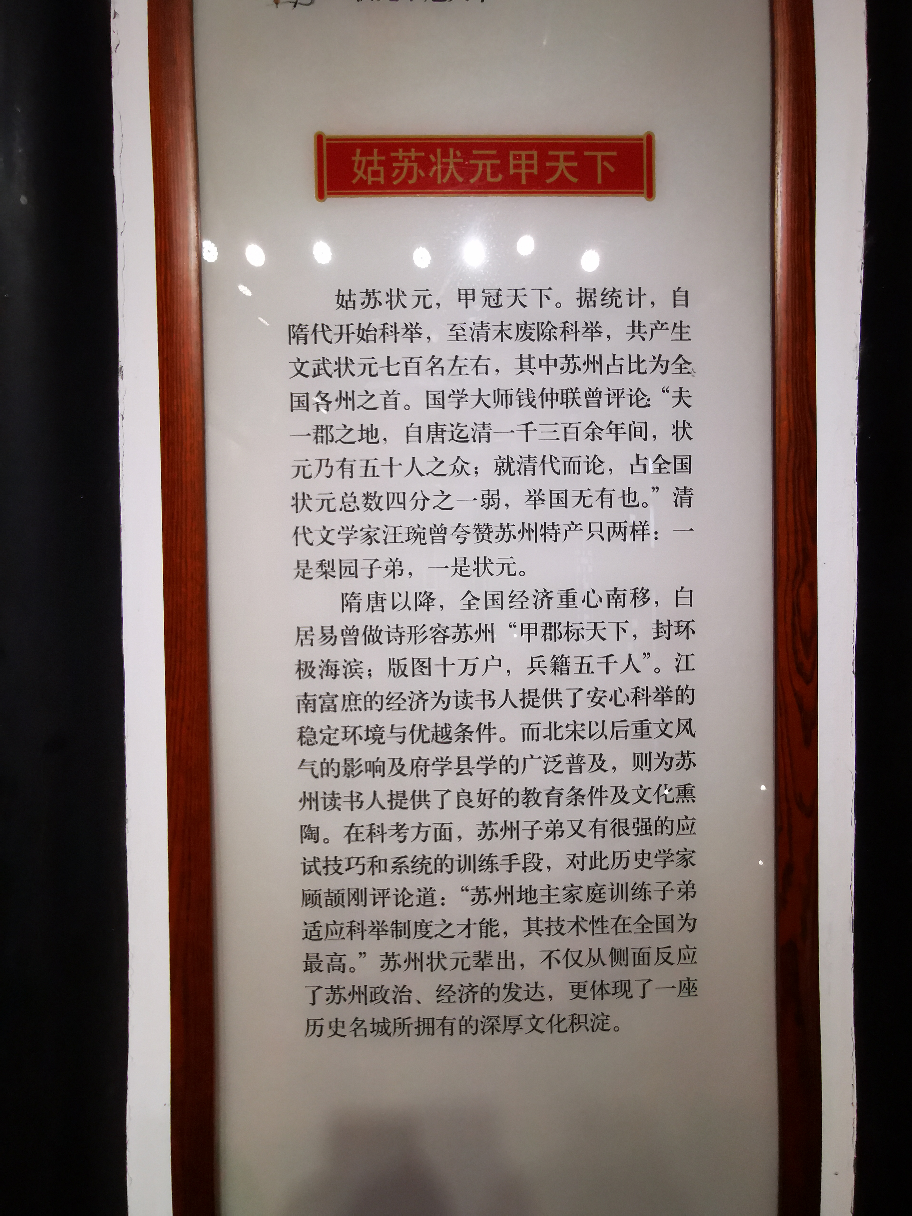 自古以来都晓得苏州园林甲天下,与之并驾齐驱的还有姑苏状元甲冠天下。“天堂”苏州,历来风物雄丽,富庶繁华,水桥巷居,人文清嘉,为读书人提供了良好的经济社会环境。自北宋范仲淹办府学始,兴学育才,开东南风气之先,千百年间,文教滋盛,苏州之学名扬杏坛。