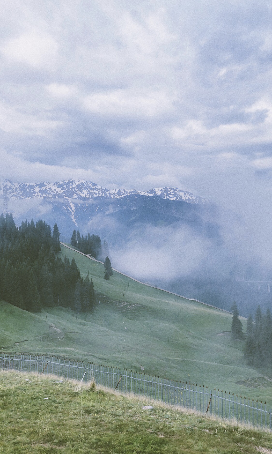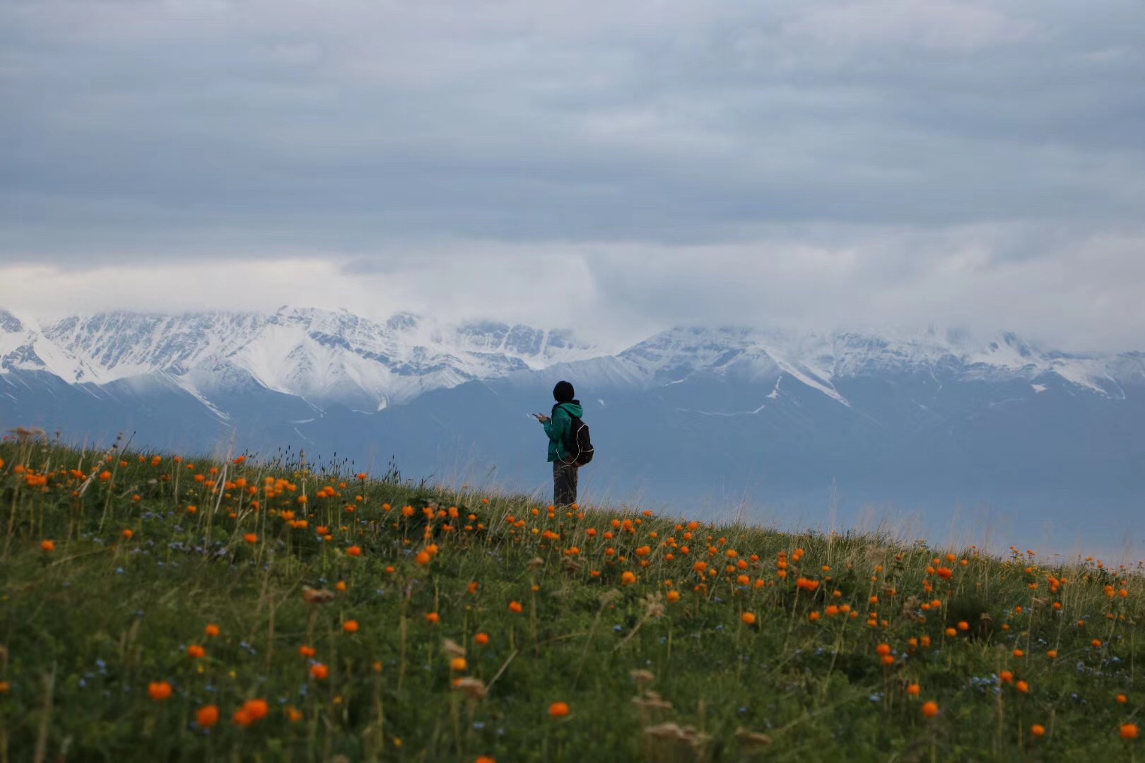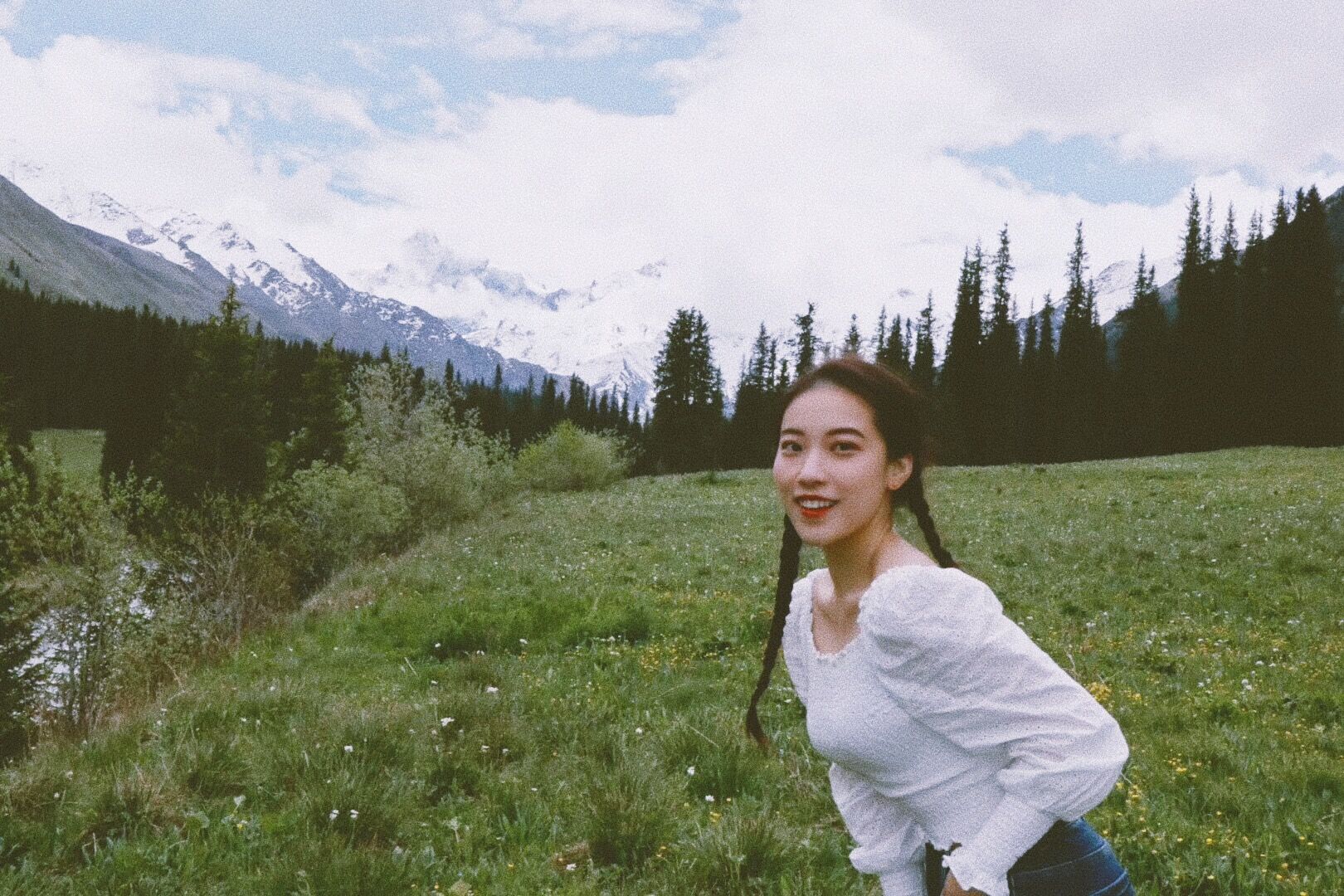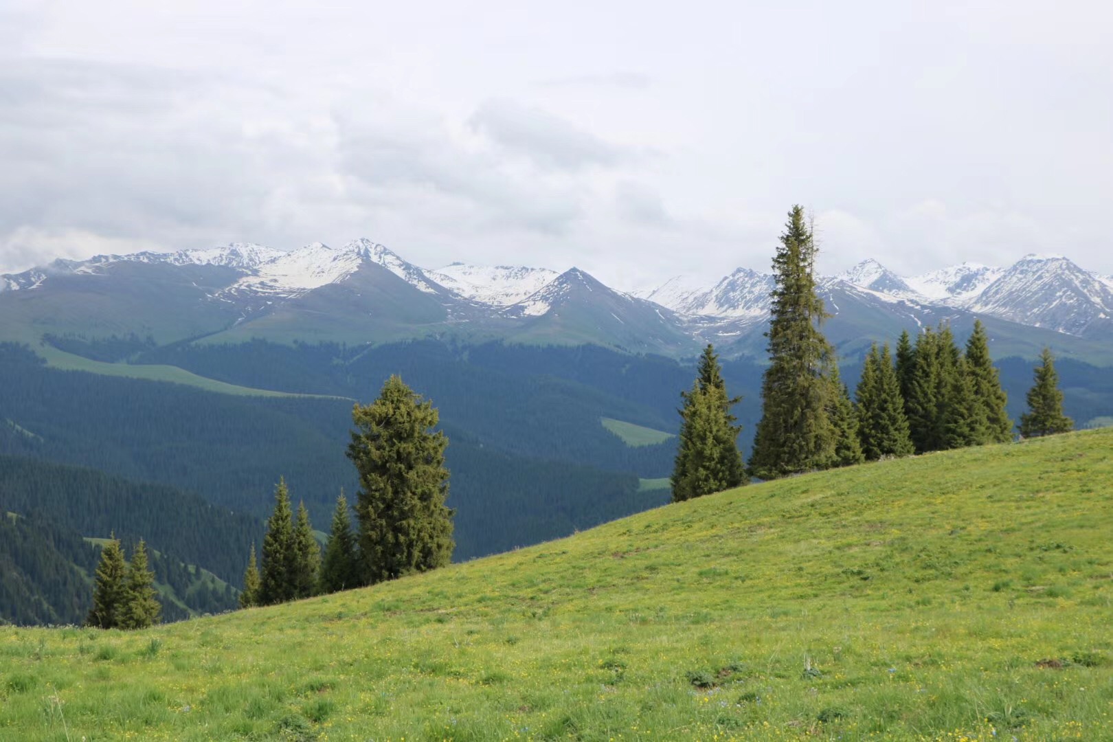 天马奔驰,牛羊遍地,野花灿烂,还有穿越树林跨过小山后豁然在眼前的皑皑雪山。