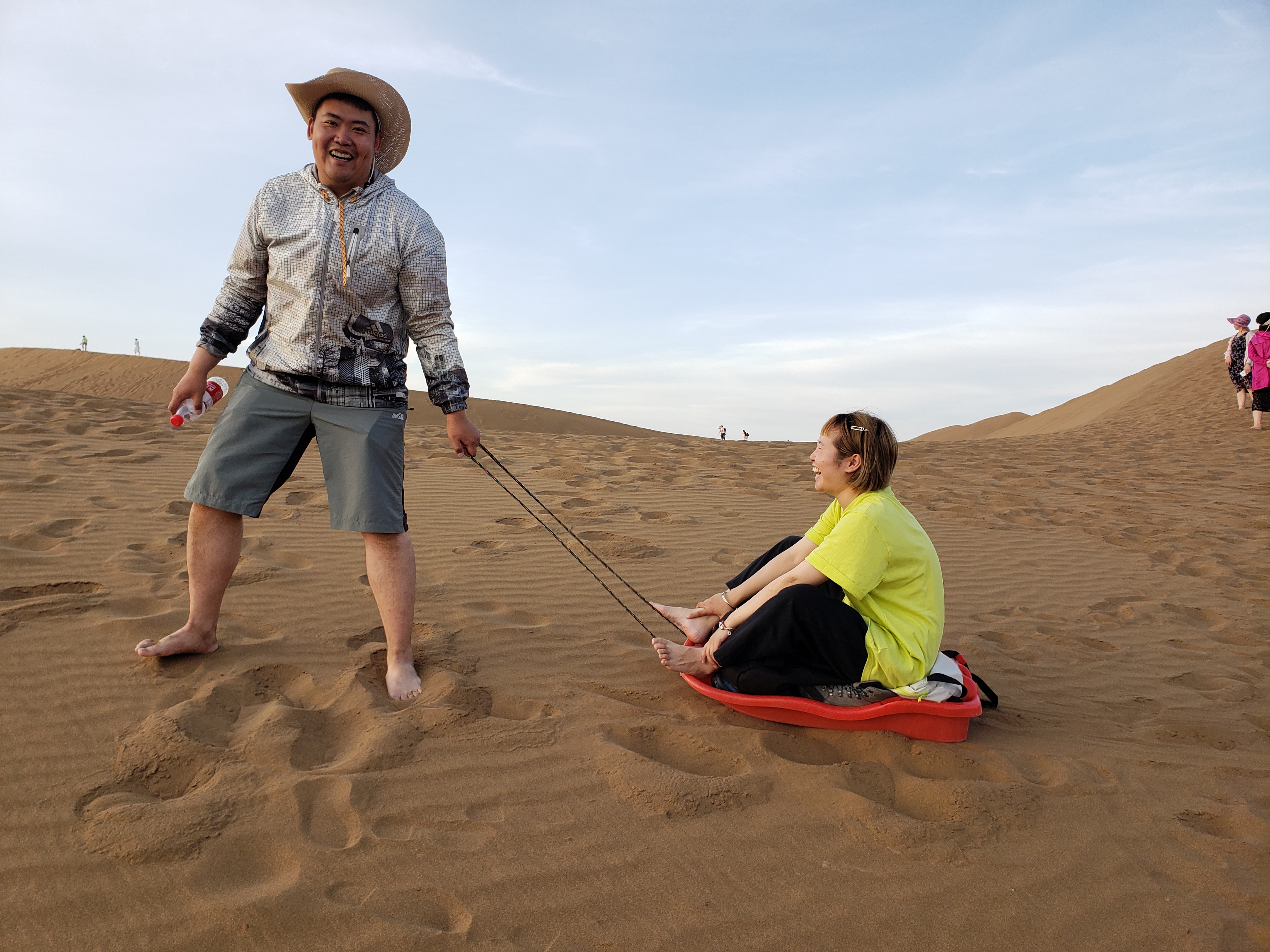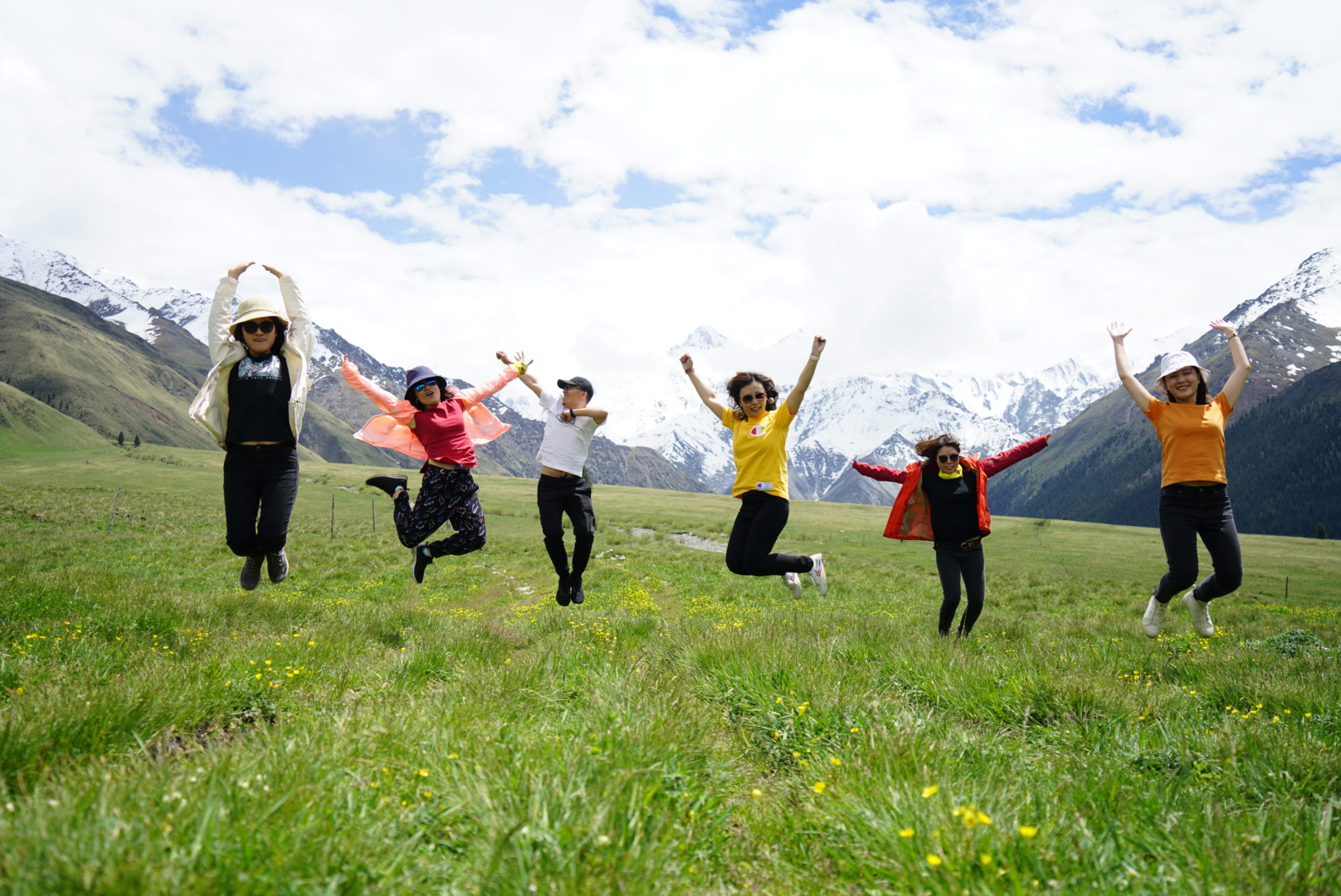 由我们团队中的大哥大打个头阵吧!本团是六一节出行的新疆天山环线由领队小卷、导游郭靖、师傅符兄构成的大家庭!