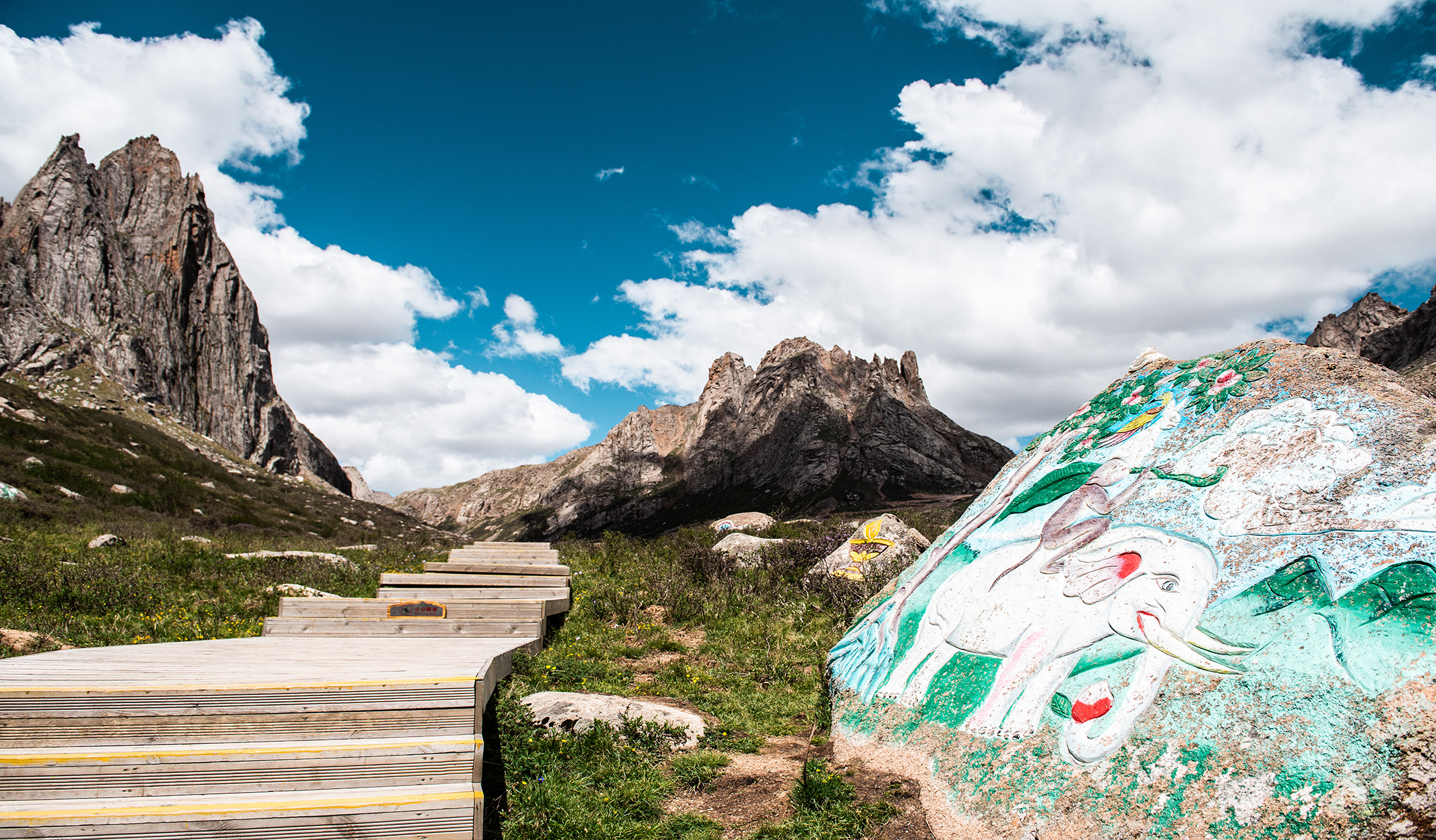 莲宝叶则景区的徒步道也很好走,沿路前行,大约1.5公里,半小时左右就可以走到景区的核心地带扎尕尔措了。