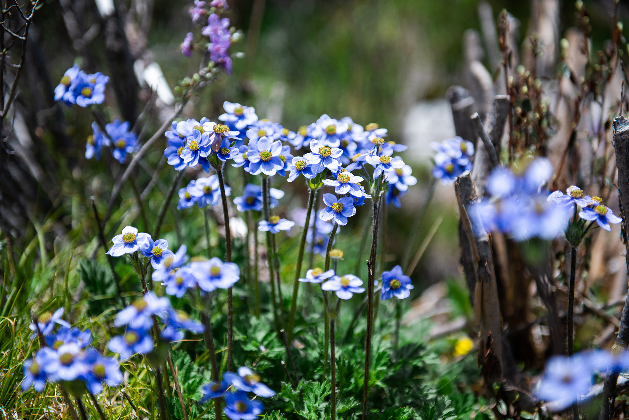 景区大门进入还要在继续行驶大约半个小时到达徒步点,半路野花盛开,金黄铺地,湖水碧蓝。