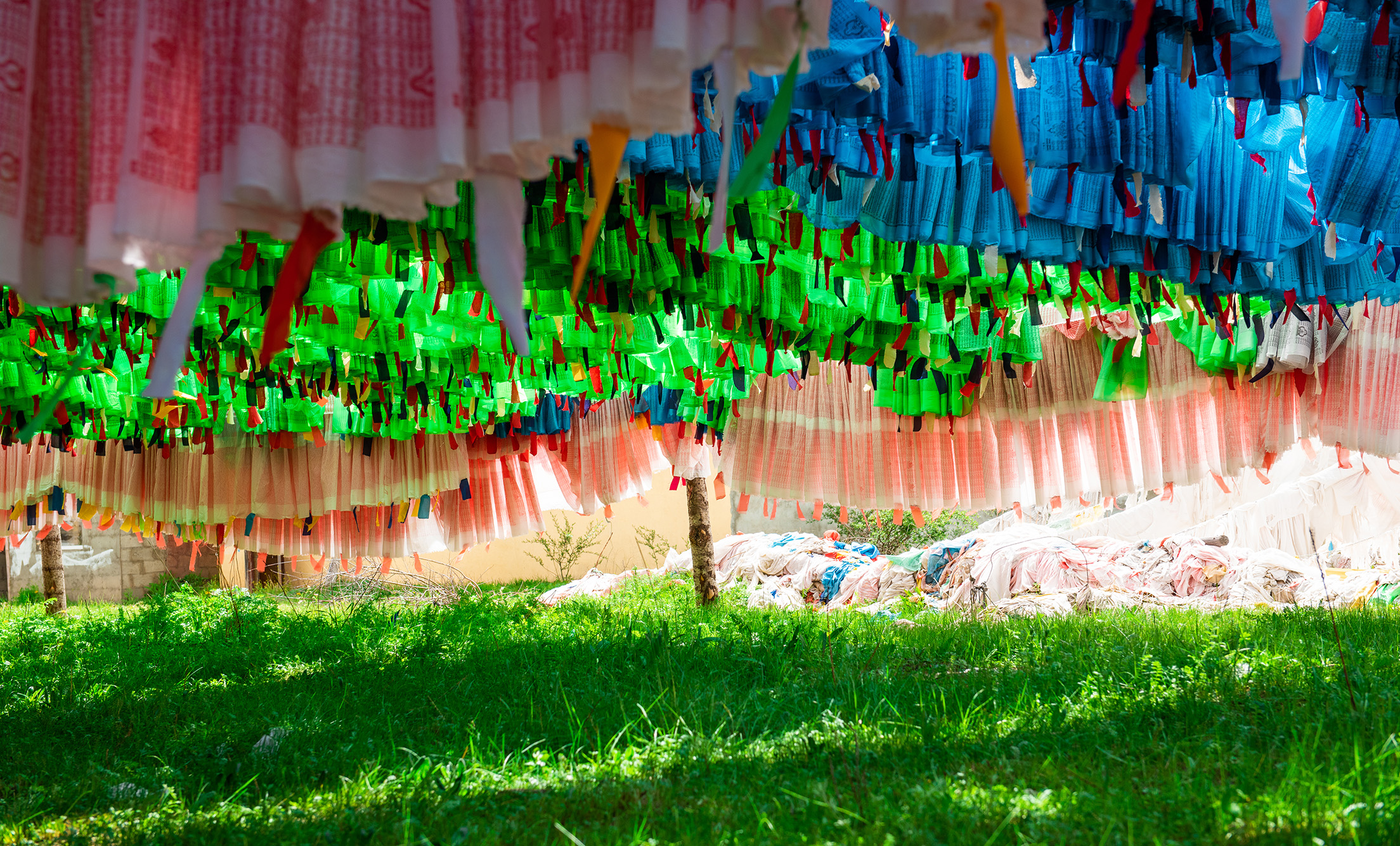 两次来这里都遇见了重大的祈福活动,山巅处,煨桑、撒龙达,敬祝神灵、祈祷平安。松柏枝焚起霭霭烟雾,这是藏族朋友祭天地诸神的一种仪式,有时为了致以最崇高的敬意,会奉上优质的粮食、桑面、献酒洒浆、燃绸缎,用自己最好的东西抛入桑炉之中,撒向天空画有一匹驮摩尼宝珠的骏马,上印日月,四角印有龙、鹏、虎、狮四种动物,附六字真言或八字真经的龙达纸,高声呼喊,似与天地诸神对话,希望神会降福于敬奉它的人们。