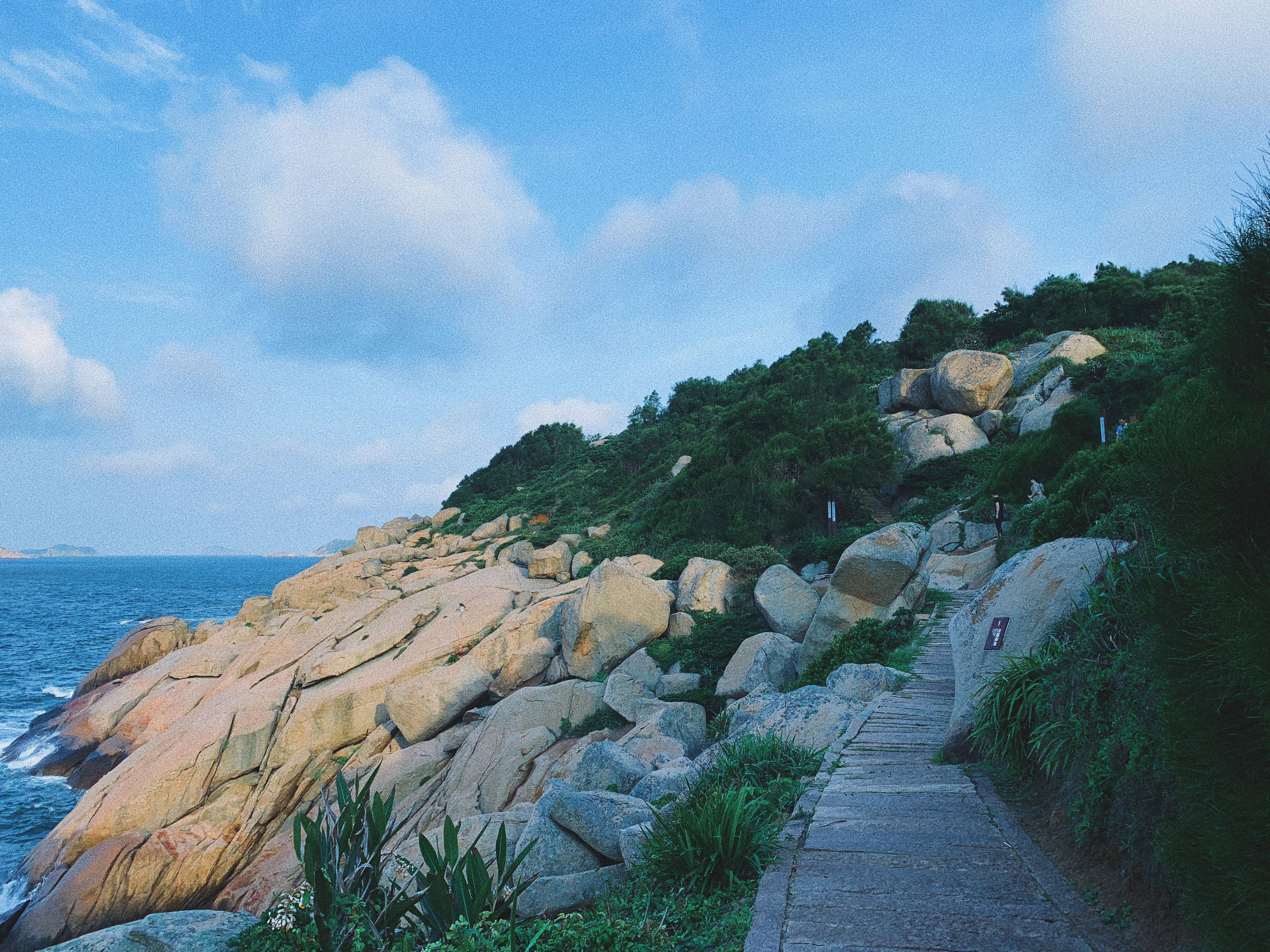 回来时可以沿海边小路近看湛蓝的大海﹑巨石﹑碉堡﹑渔村
