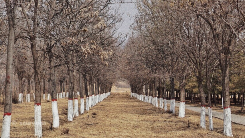 从三号陵出来以后,乘坐景区大巴车前往一二号陵,路程比较远。