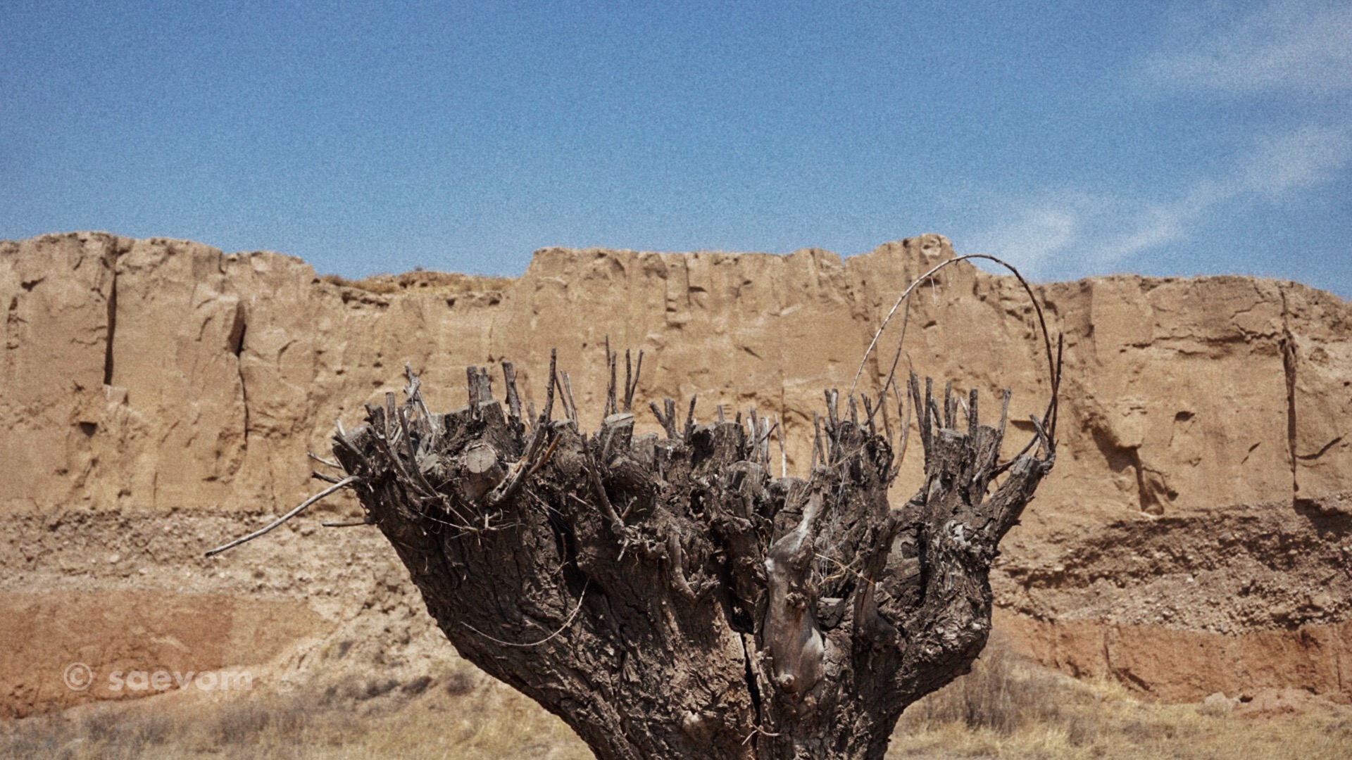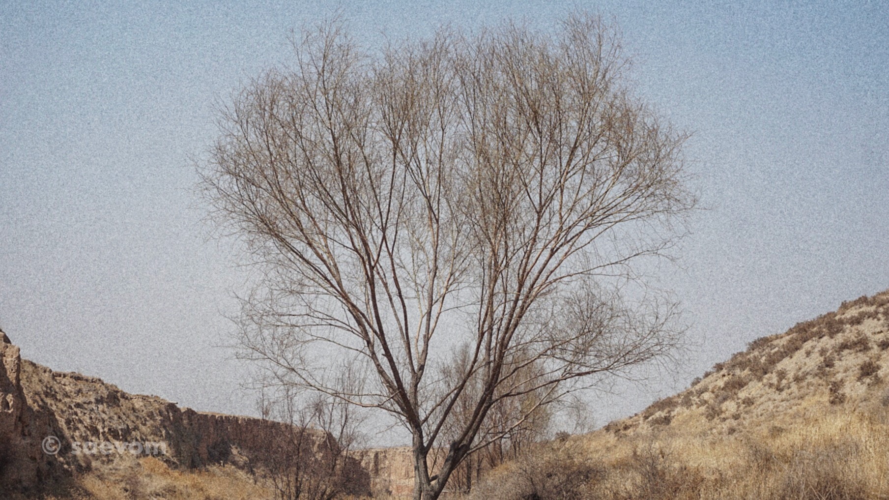 飞机即将落地前,在高空中看到干枯直立、沟壑纵横的黄土地,辽阔的土地里,站立着几棵落光了树叶光秃秃的寂寥的树,零零散散的几辆车从马路上飞驰而过,这就是我对宁夏的第一印象。漫无边际的荒漠与戈壁滩,说不尽的苍凉!