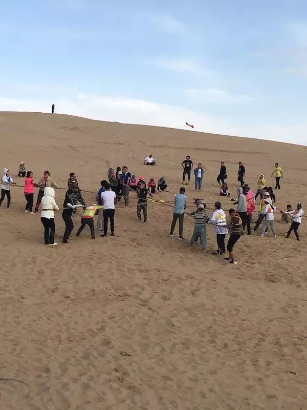 在旅行开启之前我们被分成了八个小组,而我们组是最年轻的八组,莫名地想嗨起来,而且我们也真的是越来越嗨。我们在出发前列好了菜单,在出发的大巴车上我们每个人做了自我介绍和才艺展示,发现旅途中总有些人有种魔力吸引着你,他们明明可以靠颜值,偏偏就是要靠才华,因此也结识了很多有趣的人。尤其是我们组的社会姐和乾坤唱歌帅到没朋友,还有各国文艺小清新歌曲,印象最深刻的就是穿牛仔服的短发姑娘,她的歌声一秒征服你,一秒让你无法自拔。节目结束了,我们带着愉悦和奋进的心情下车买好菜准备进入沙漠喽。
