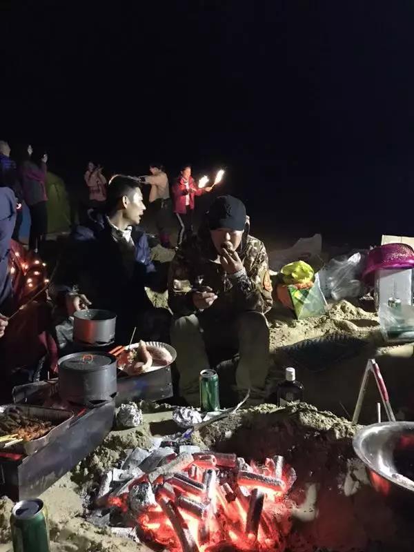 然而就在我们这些糙汉在外疯玩的时候,我们组的向阳大哥、果果和她准对象、圆圆的小对象还有两位氧气少女在默默的为我们准备着晚上烧烤的食材,特别的爱给特别的你们,爱你们...可惜没有照片,这一餐真的就是沙漠之行最后的晚餐。八组的小伙伴真的是战斗力惊人,我们自己的烧烤吃完之后,我们齐刷刷的坐在了二组的碳火锅周围,帮助二组解决剩余食物,燥起来,烧烤火锅吃起来...