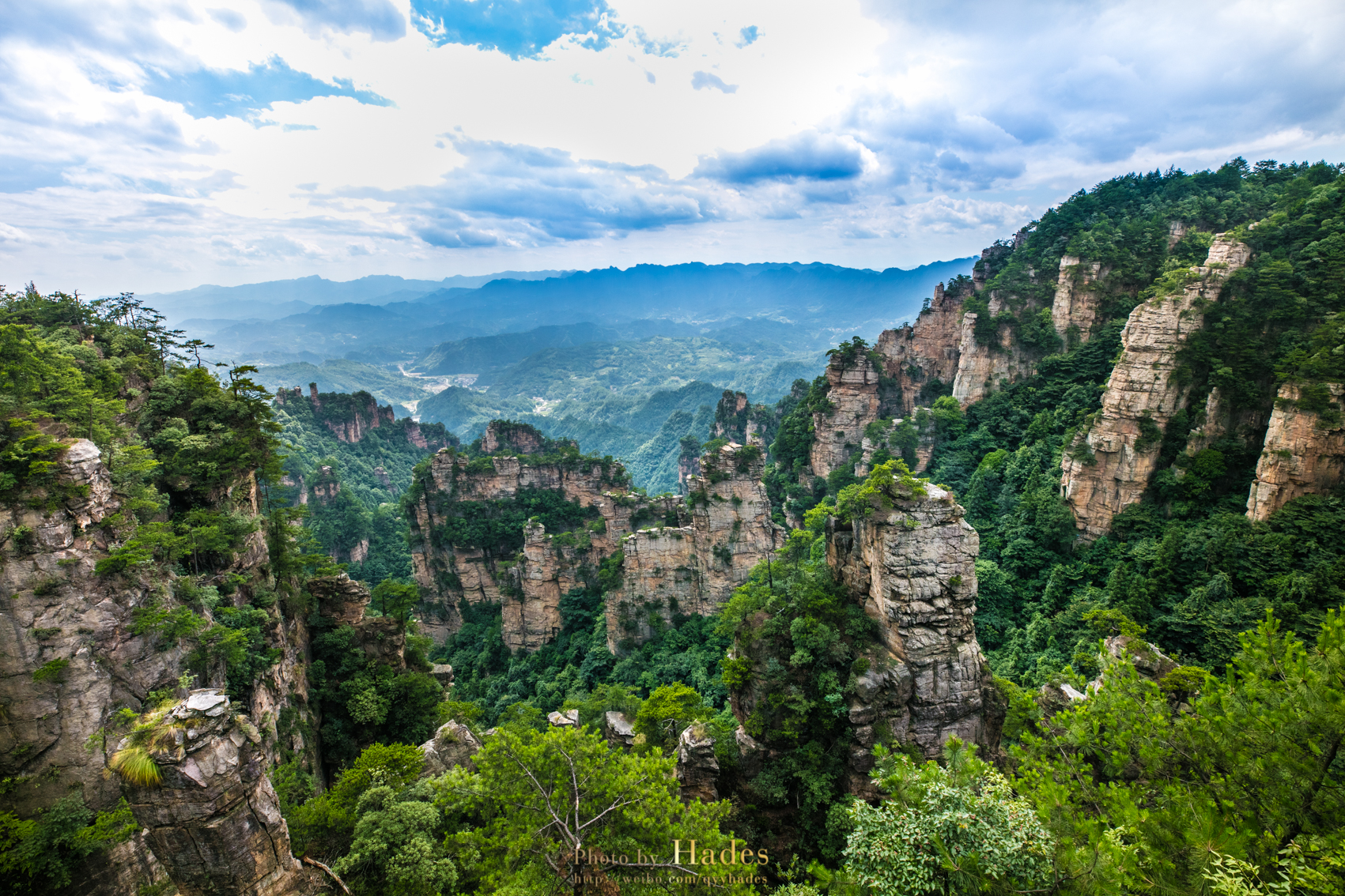 当地有不到黄石寨妄来张家界的说法。主要是因为这里号称电影《阿凡达》第一取景地。据说电影《阿凡达》中的悬浮山便是参照了这里的山峰样式。其实游览张家界,最美最好的天气并不是晴空万里,而是烟雨绵绵。因为阴雨的天气,山谷中才会云雾缭绕,让人看不清谷底,而高耸的石峰,便如飘在云海之中的悬浮山。这次没遇到这样的云雾天气, 只能遐想下了。