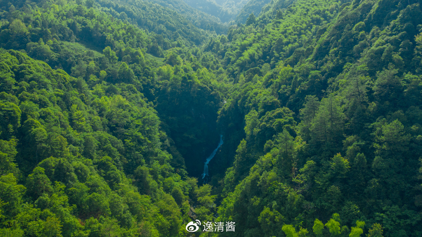位于秋浦河畔的百丈崖景区,被大片大片的原始森林所覆盖,随处可见碧绿的潭水。