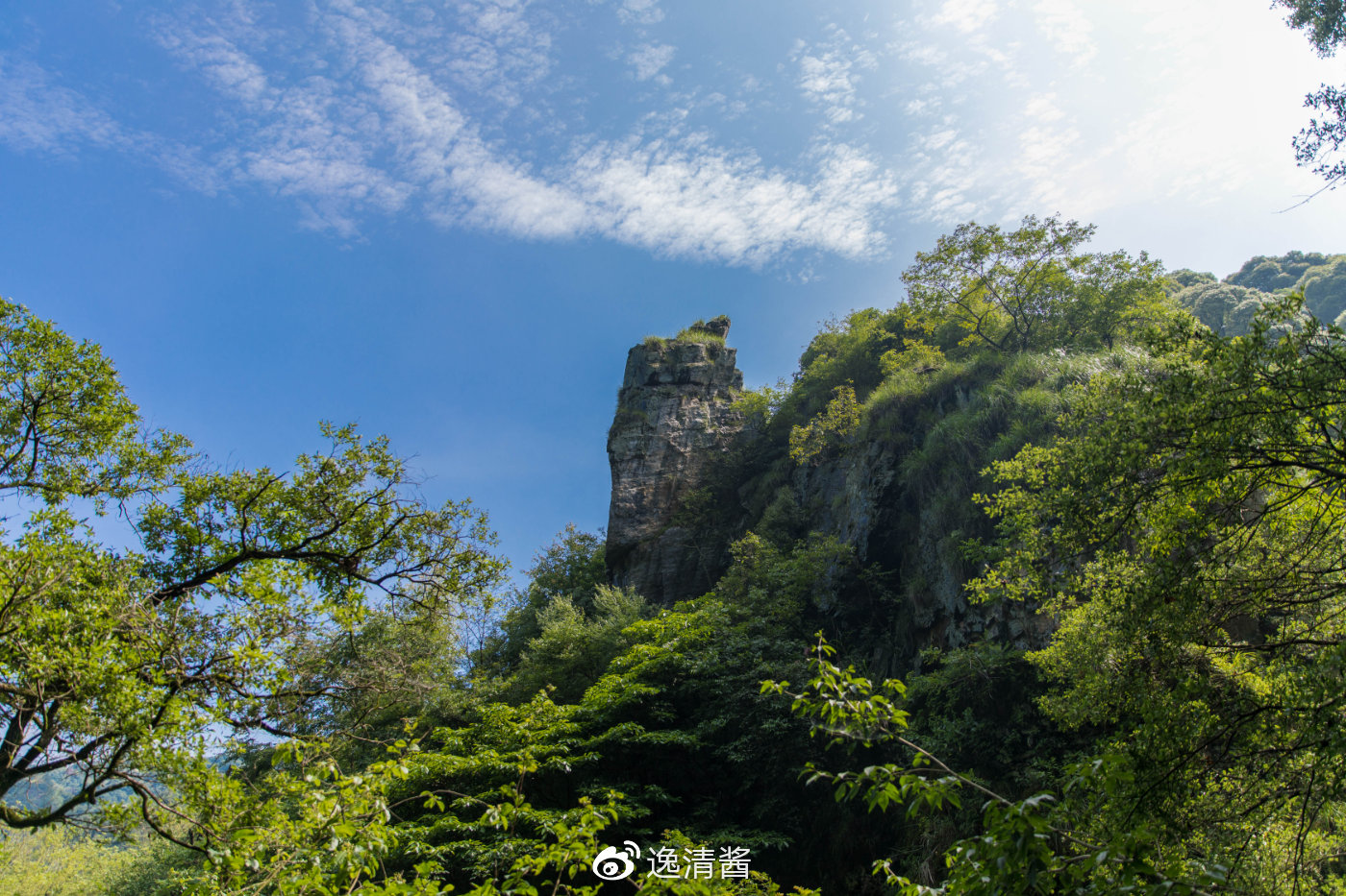 “龙门潭”潭水青碧,峡谷幽深,怪石遍布,古木如盖,两岸青山的翠色,全都倒映在清澈的潭水里,仿佛是一块无瑕的翡翠。