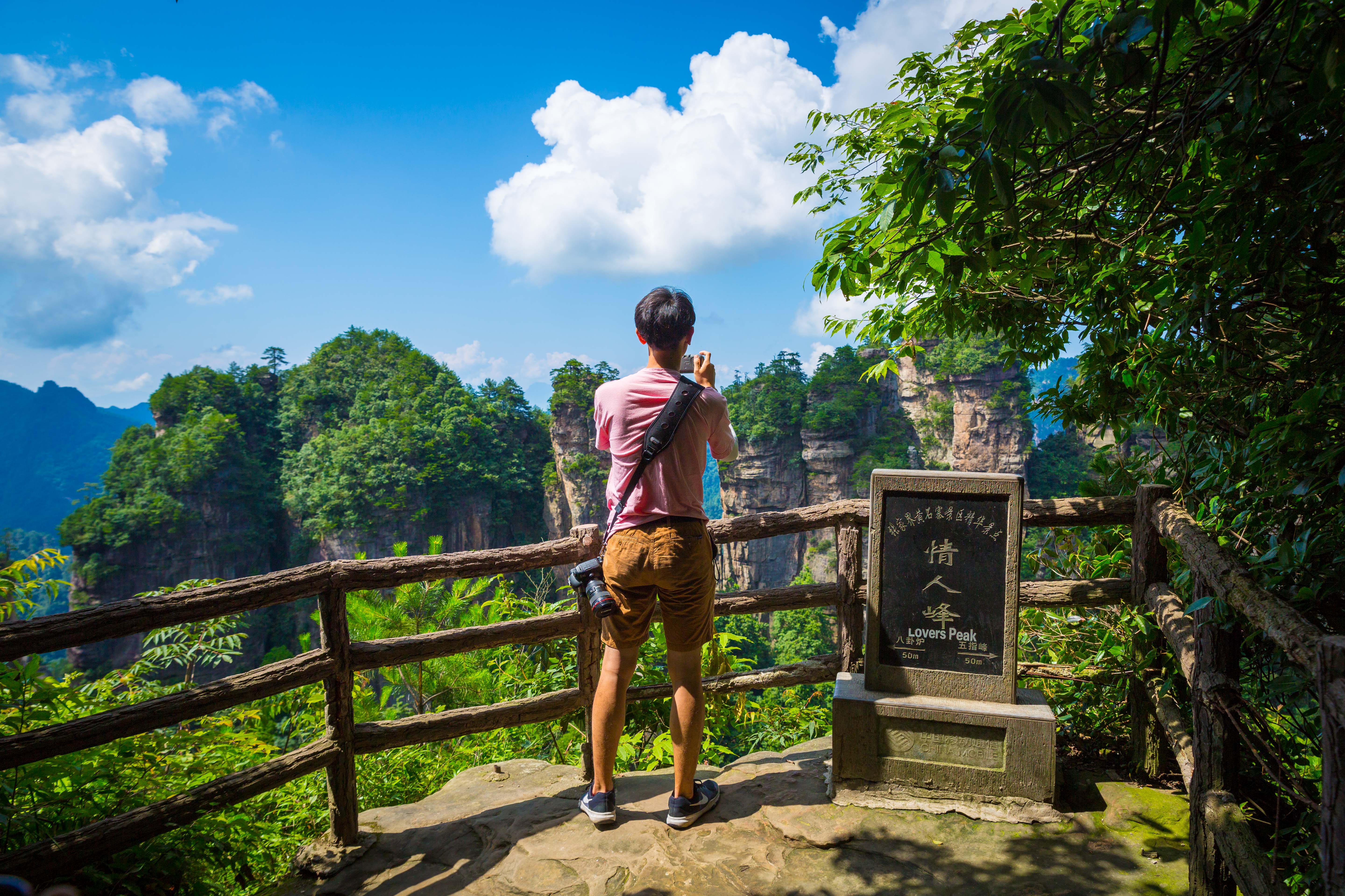 上午看过天子山和西海峰林,下午前往袁家界,电影《阿凡达》就在景区中的一个主要景点“乾坤柱”取景拍摄。这里树木茂盛,有雾气弥漫、群峰叠嶂的美景。