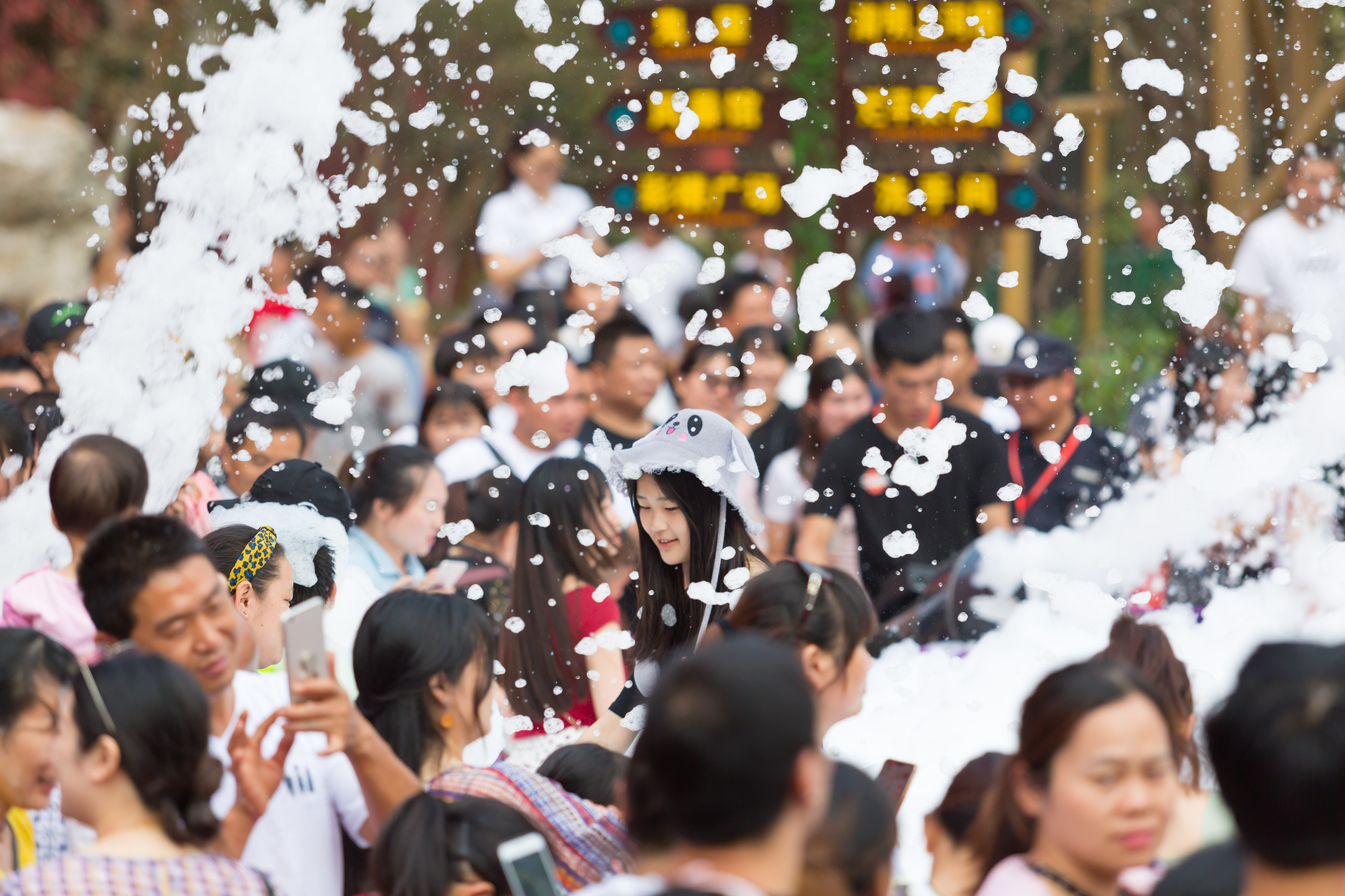 景区内的泡沫狂欢趴简直是大人与小孩的欢乐海洋,不仅孩子们玩得欢,各位宝爸宝妈也沉浸在泡沫狂欢中,尽情享受酷暑中的清凉。