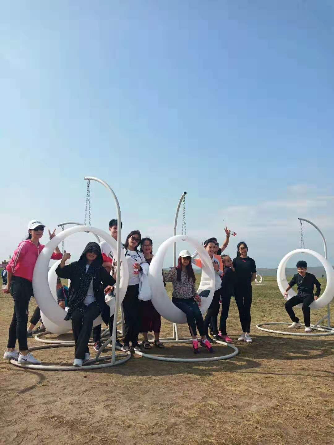 到了第一个景点,原本行程上的金帐汗草原似乎因为要收没票而没有进去,转而去另一个不用收门票的景点,一进去就可看见敖包,大家很兴奋的跟着绕三圈,据说是有祈福的涵义。