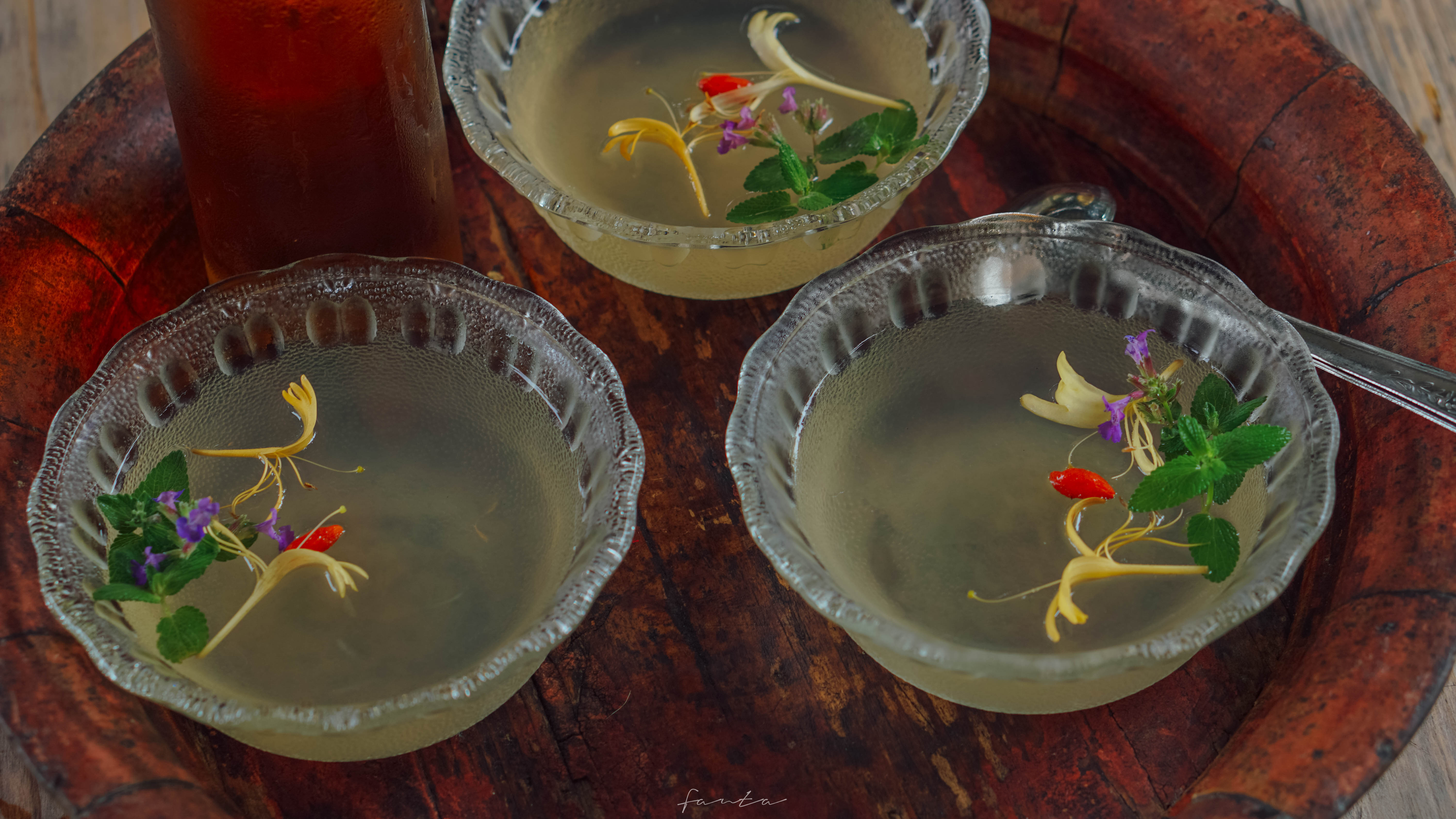 海石花是这里特有的药材,为动物脊突苔虫或瘤苔虫的干燥骨骼,为珊瑚样不规则块状物。将它煮开放进冰箱,就会变成像果冻一样。